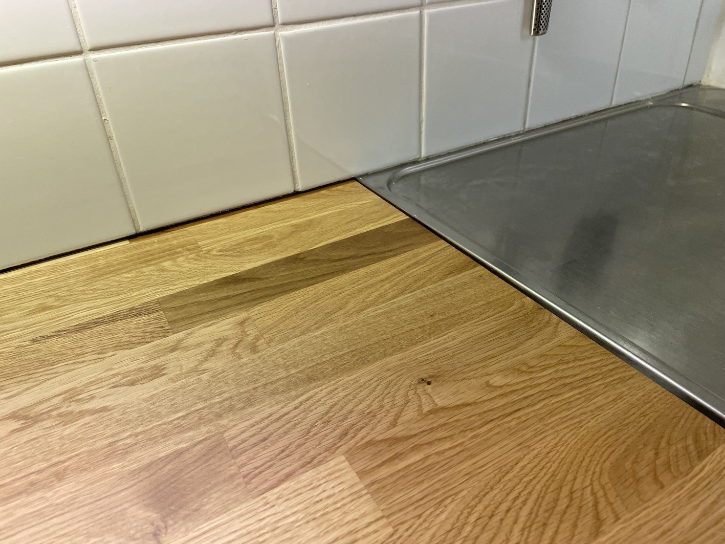 1) Fäster silikon på oljad bänkskiva? Det är en faner-skiva från IKEA där jag (kanske dumt) oljade in sågade ytor med Stockaryd Träolja (tungolja + linolja). Ytan upplevs som fet. Ska jag rugga upp med sandpapper där jag lägger fogen eller kommer silikonet fästa ändå?
