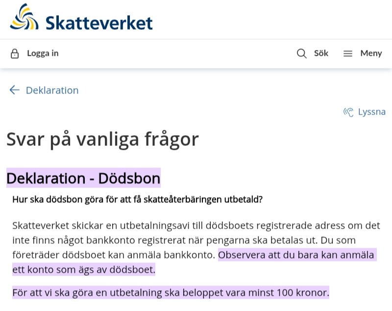 Du läser inte Skatteverkets egna länkar?Alfredo skrev: