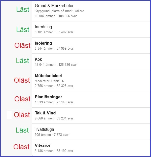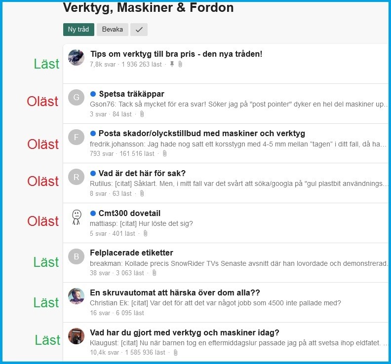 Mycket bättre jag saknar verkligen Fet stil för olästa trådar och vanlig för lästa trådar, det blå pricken tycker jag är värdelös och betydligt mindre överskådlig.M Mats skrev: