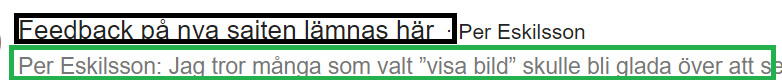 Sen angående citat hävdar jag fortfarande att det är ologiskt att klicka på det och hamna någon annanstans än på det inlägget. Här vill jag se en ändring så att fälten bryts isär