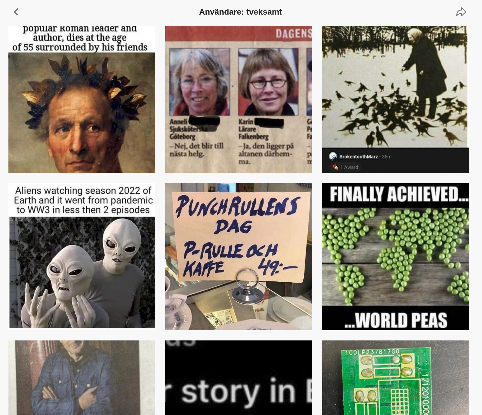 Aha, då är jag med, jag gick vägen via profilen. Då ser man först en annan vy, får klicka på "visa mer" och sedan på "användare: XXXX" för att se dem på samma sätt.Alfredo skrev: