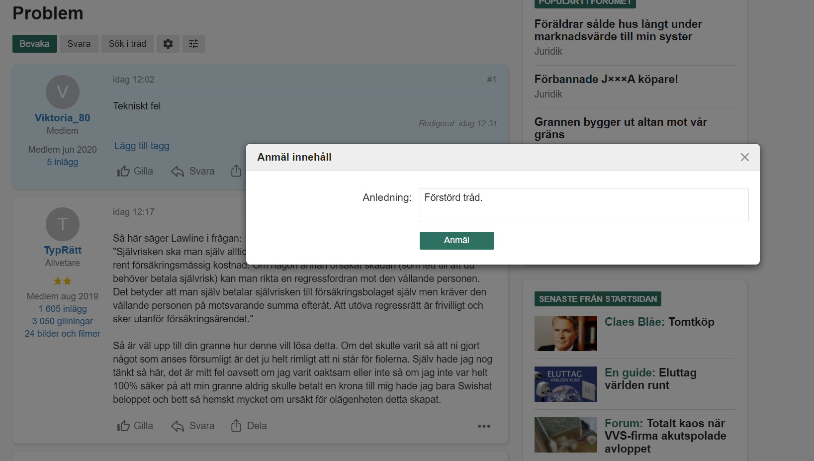 Jag kan inte anmäla en tråd där trådskaparen förstört sitt första inlägg efter att ha fått svar: