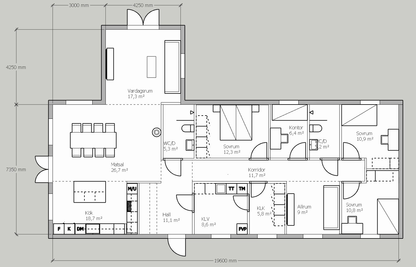 Bra idé, jag försökte med det men fick inte till vettiga mått på sovrummen utan att bredda huset.Purre skrev: