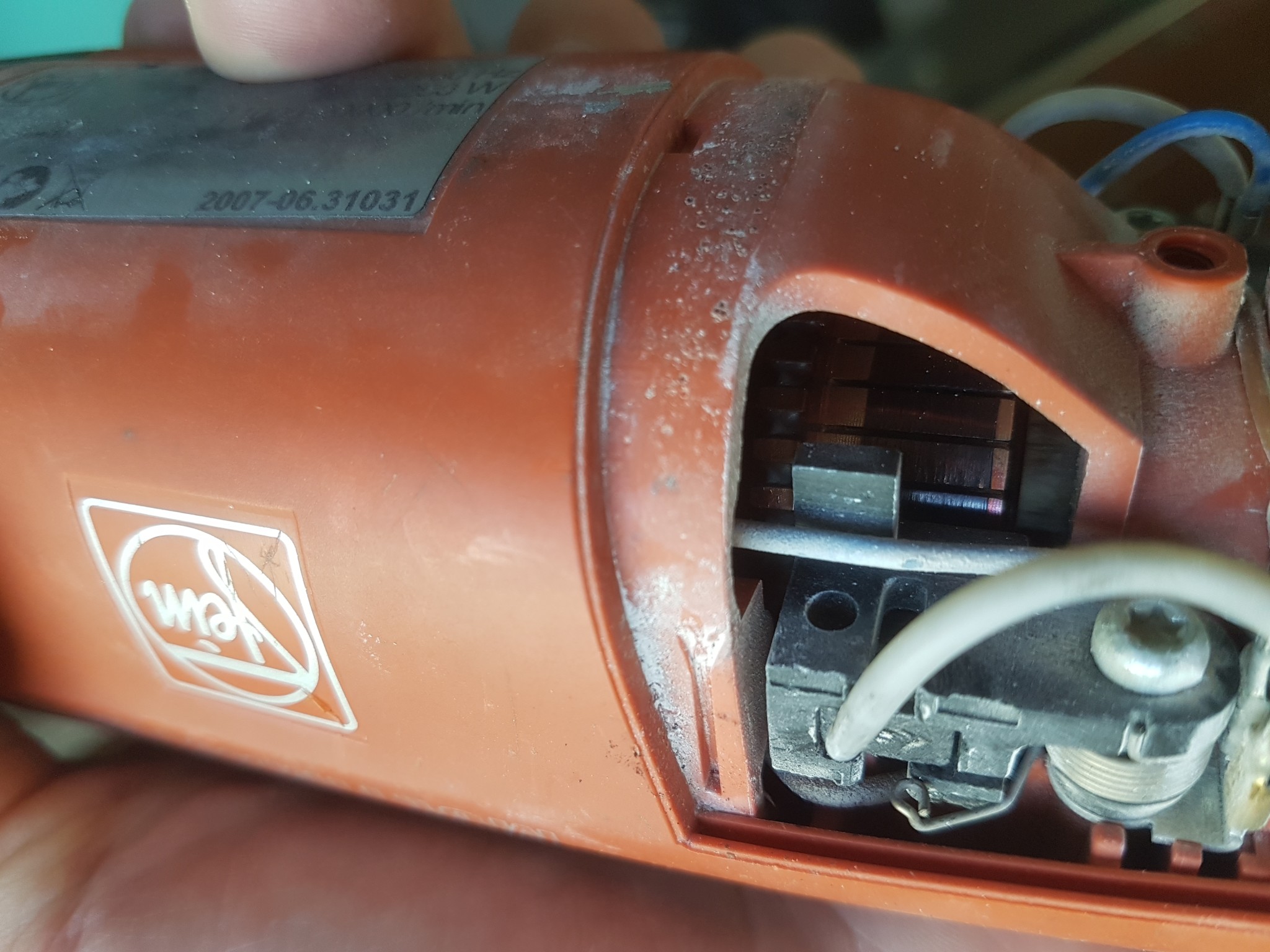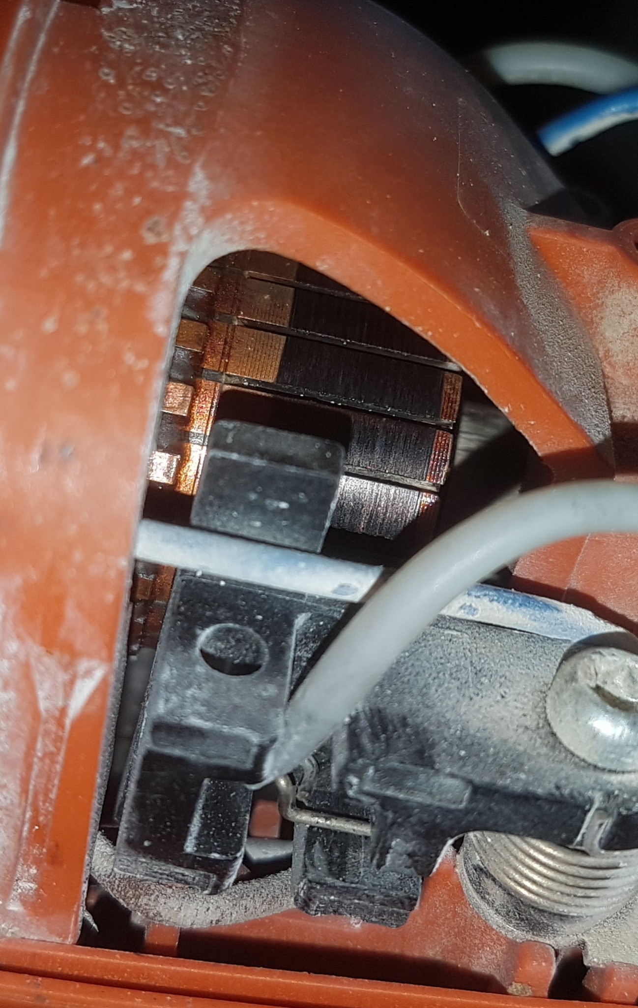 Den låter som den ska och alltid gjort (tillverkad 2007), kollektorn ser och känns slät, den är mörkare till färgen jämfört med resten av statorn, men det mörka området är bredare än kolen så det är väl så från fabrik.