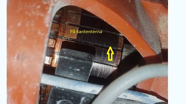 Hur ser det ut vid kolen när du kör den , tycker det ser ut att vara små brännmärken på kollektorn , prova med att putsa av med en smal remsa av sandpapper 240 på en trästicka ( inte smärgelduk ) när du kör denR RealElwood skrev: