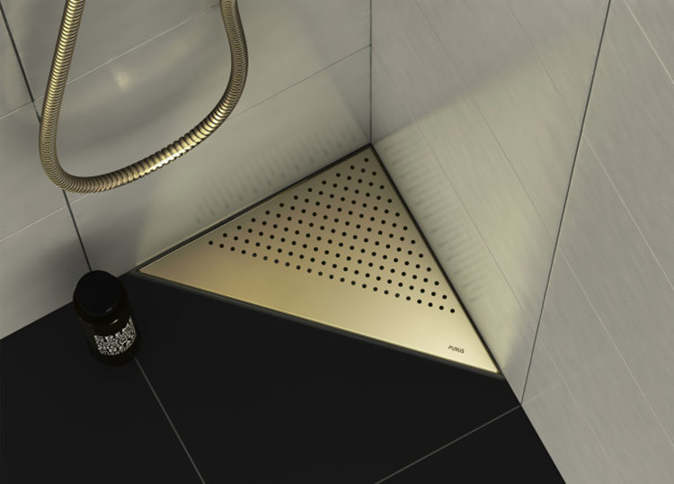 Man har använt den gamla toalettstolens avloppshål och gjort om det till duschavloppet istället..