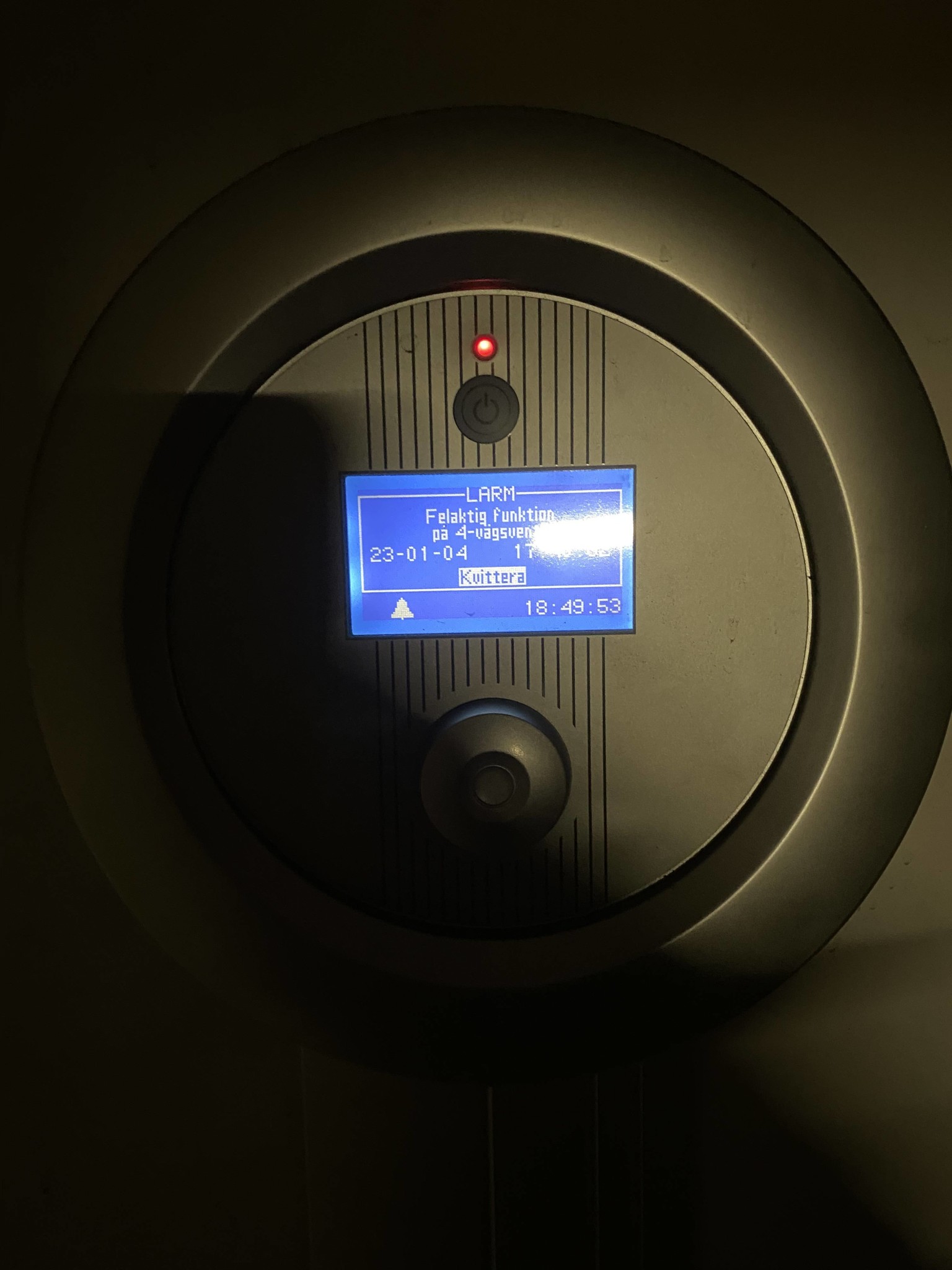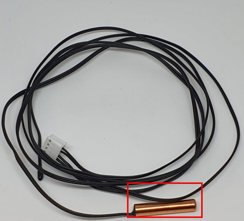 Den sitter bakom ett galler och på gallret sitter en liten givare med sensor, som den rödmarkerade nedan. Det sitter samma på respektive rörböj. Ska jag kontrollera att den andra, vita ändan inte lossnat? Den kan jag inte se, utan att demontera ned delar, så får bli imorgon.