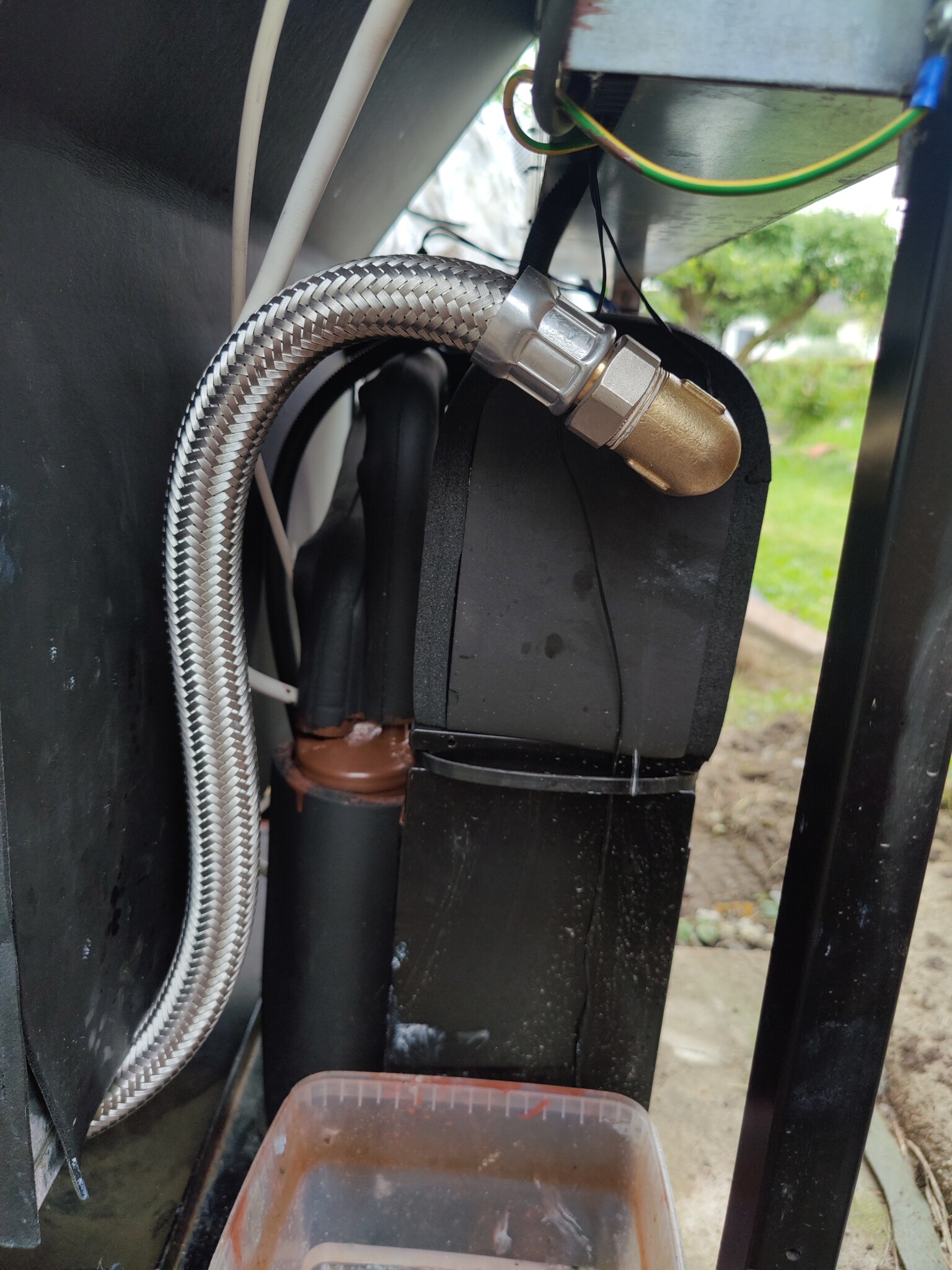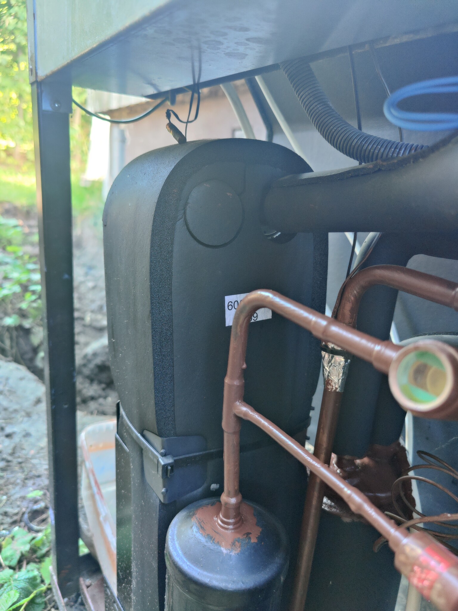 Mitt problem var att de sista 60 cm av nedan övre gamla rör (bild 3) till utedelen (svarta låda bild 2, kan ej namnet, förångare, kondensor?) läckte som jag bytte till en flexslang. Det nedre läcker inte men får nog byta den också snart sannolikt. Båda rören leds genom fasaden till innedelen. Efter bytet av rör får jag felmeddelandet: