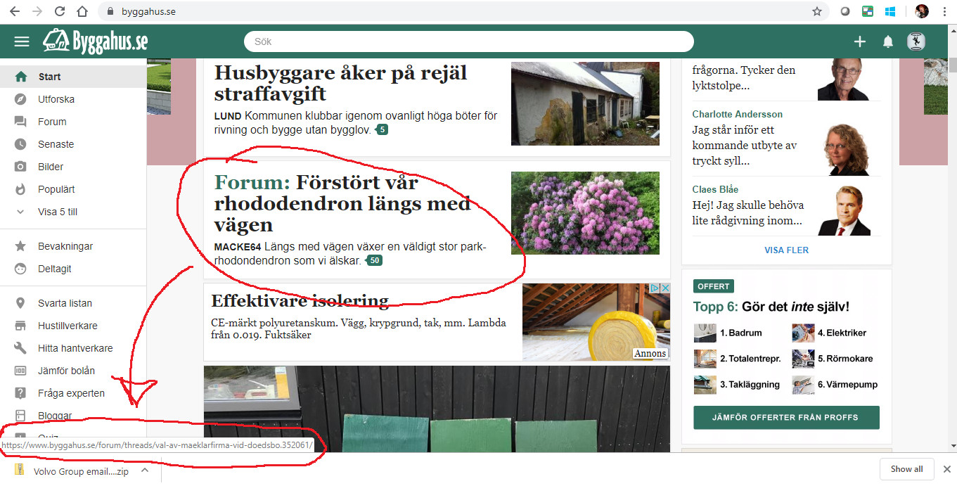 Nu är frågan om det kommer synas på den här bilden men... När man klickar på tråden på förstasidan om en förstörd rhododendron så kommer man istället till tråden om val av mäklare till dödsbo... Antar att det blivit något knas med länkandet bara.
