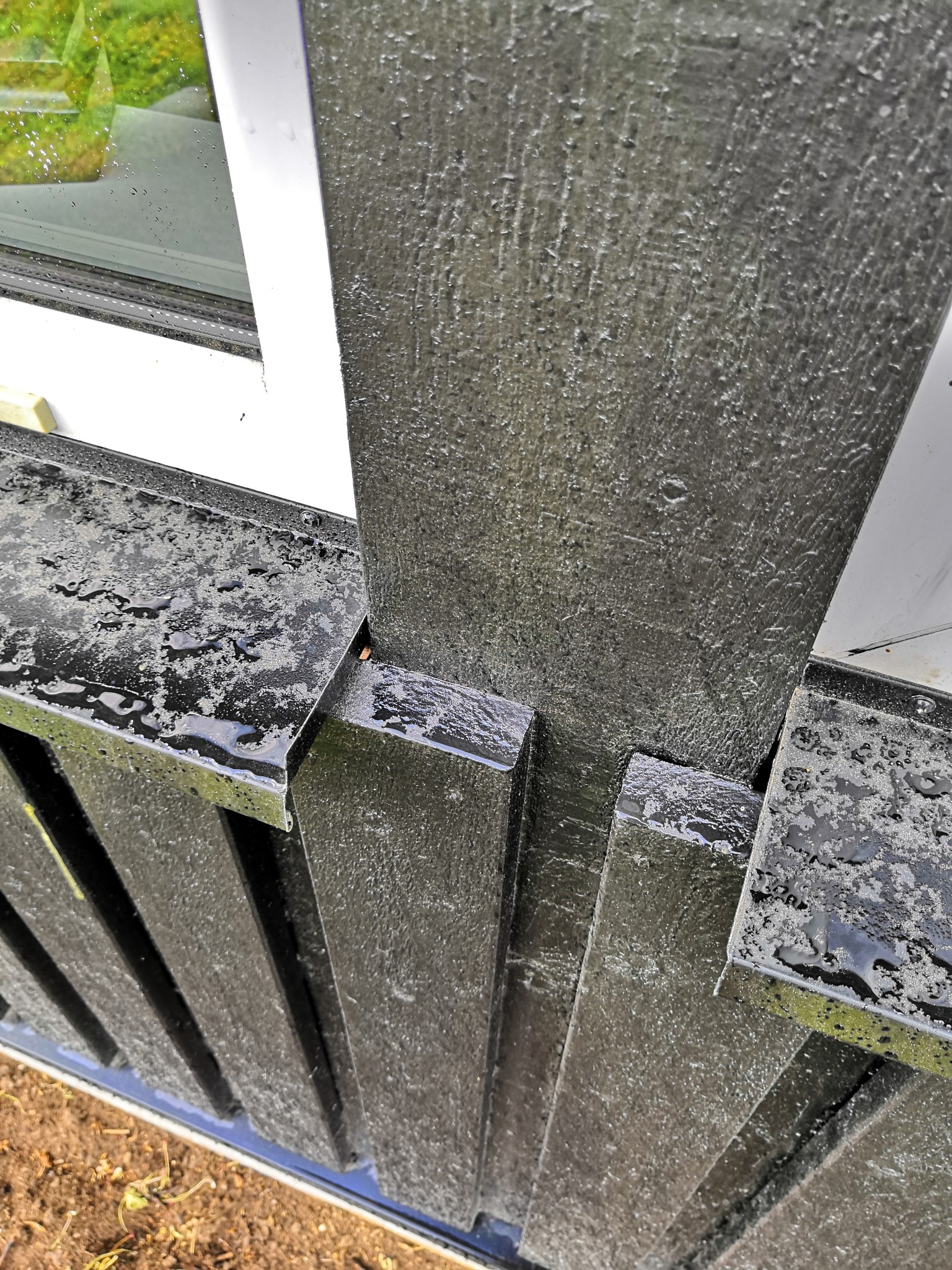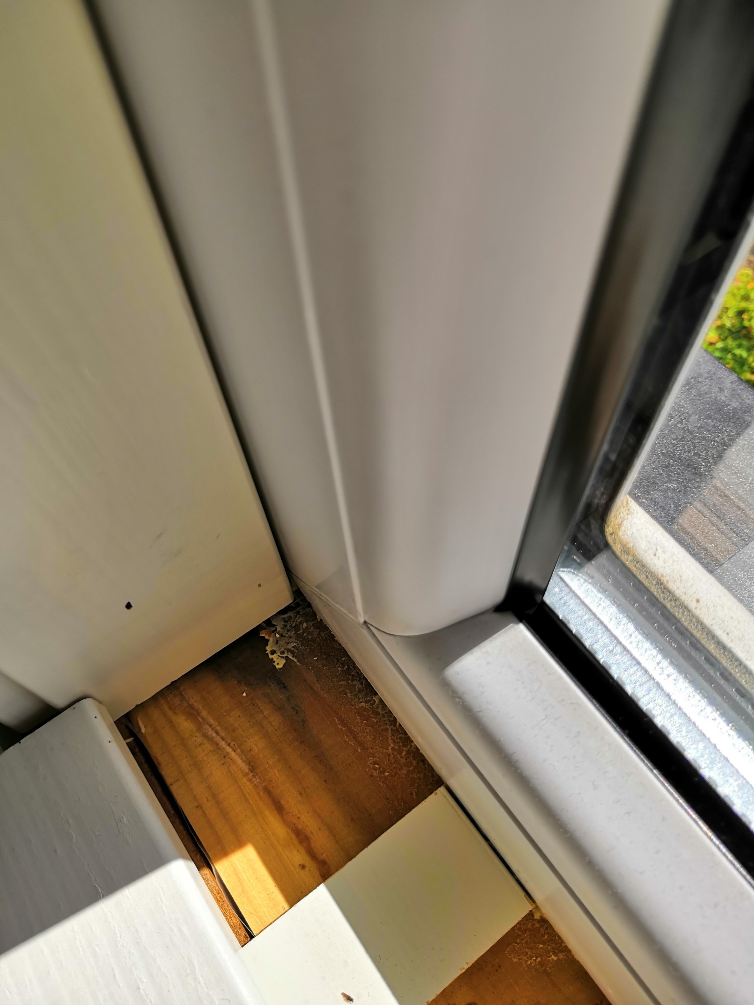 fönsterbleck under spårskenan till skjutfönster på altan