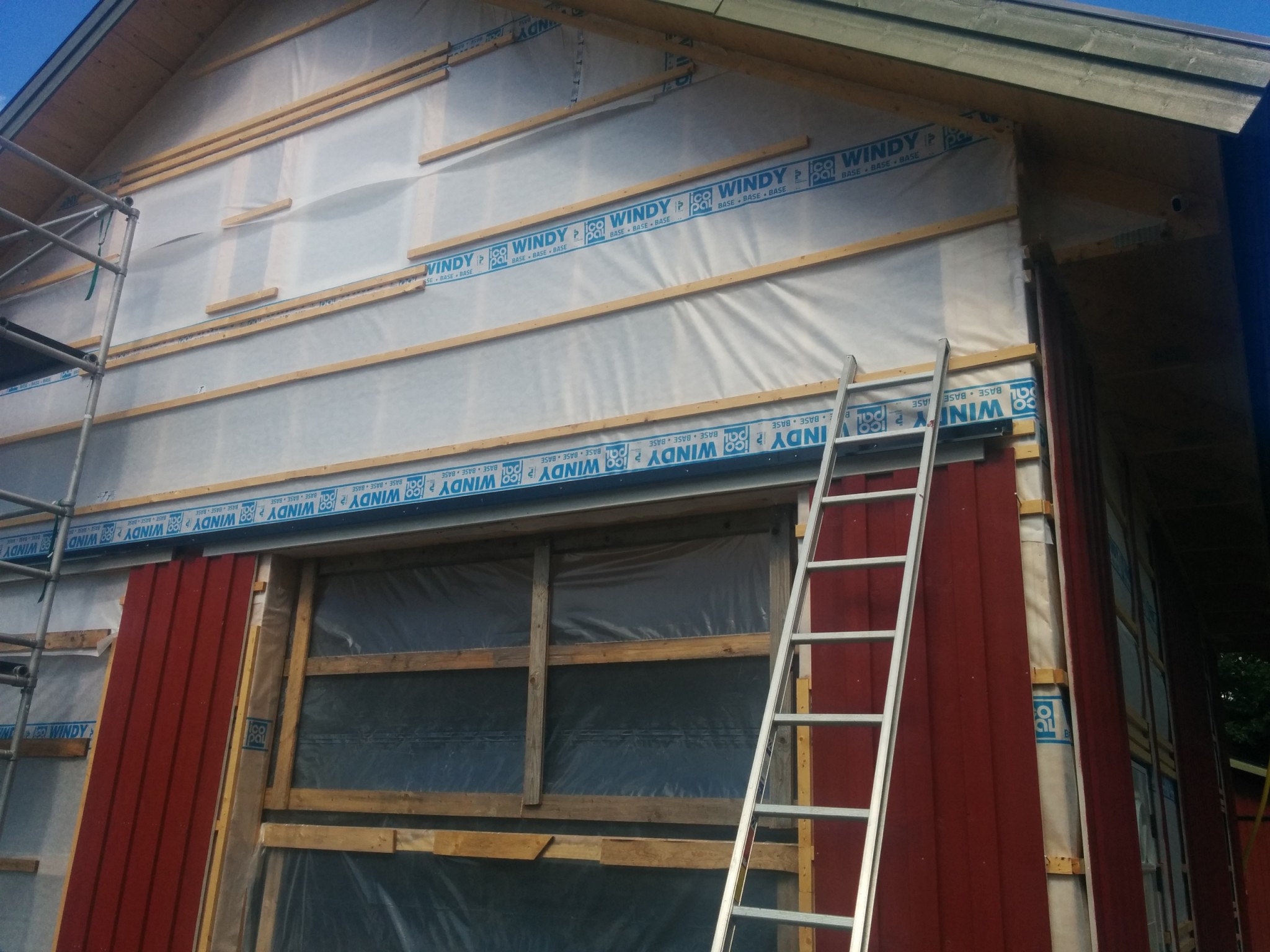 min rädsla är att jag kan få vatten och björkfrön och skit som blåser in under den stående brädfodringen, blåser över blecket, och lägger sig på spikreglen. det torkar aldrig ur och sedan så ruttnar det.