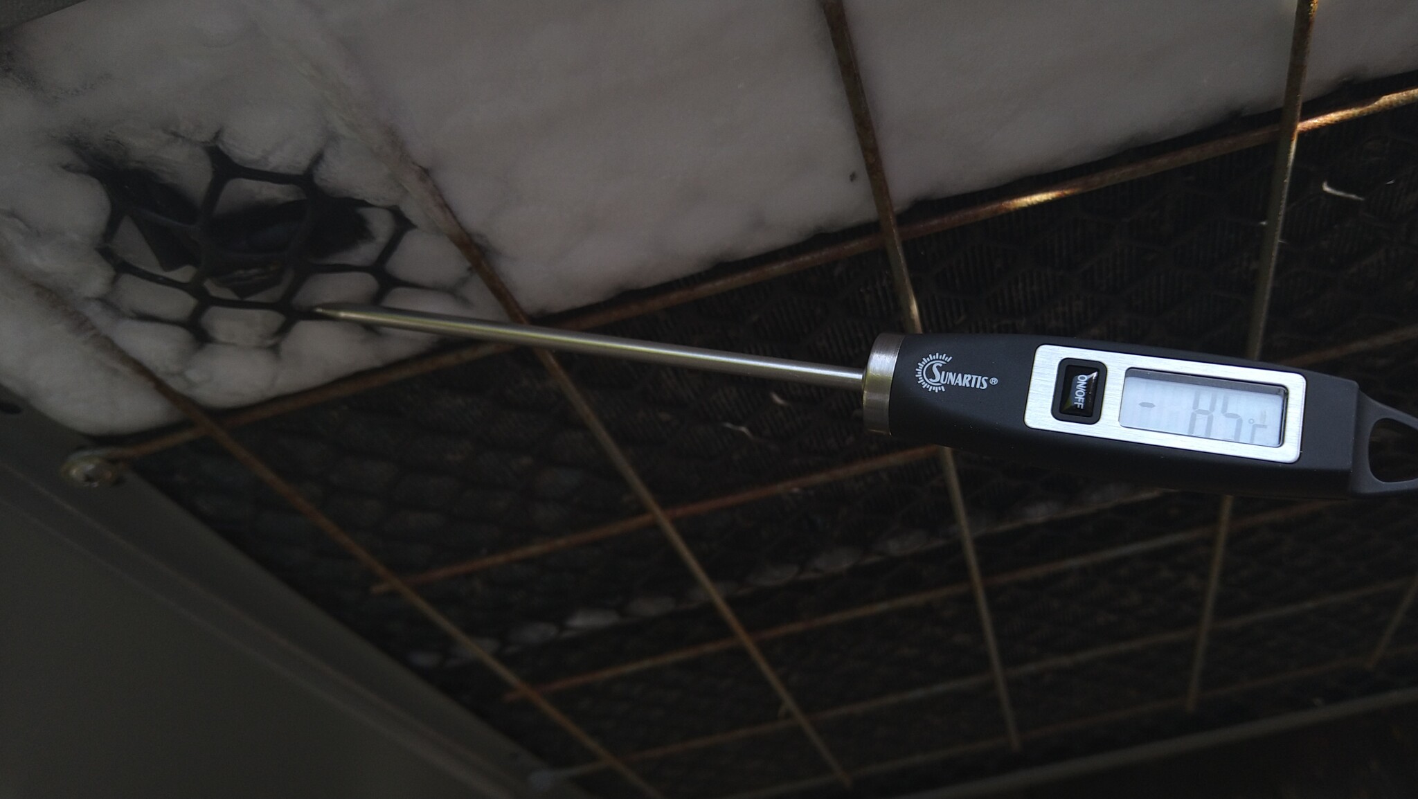 Det jag lättast kan mäta är i isen på baksidan och där är det ca -9. Det finns en tempsensor där och möjligen är det den som rapporterar 11 grader, enligt tidigare inlägg. Och det stämmer ju inte...