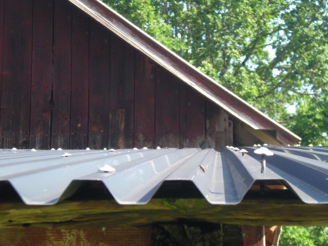 Ett av uthusen på landet har vanligt korrugerat plåttak. När man satte upp det för 10-15 år sedan så satte man farmarskruv på "topparna" och inte i "dalarna". Taket läcker och jag behöver argument för att "felspikningen" orsakat läckaget och hjälp med idéer ifall det finns andra sätt att "fixa" detta utan att byta till nytt tak (spikat i dalarna).