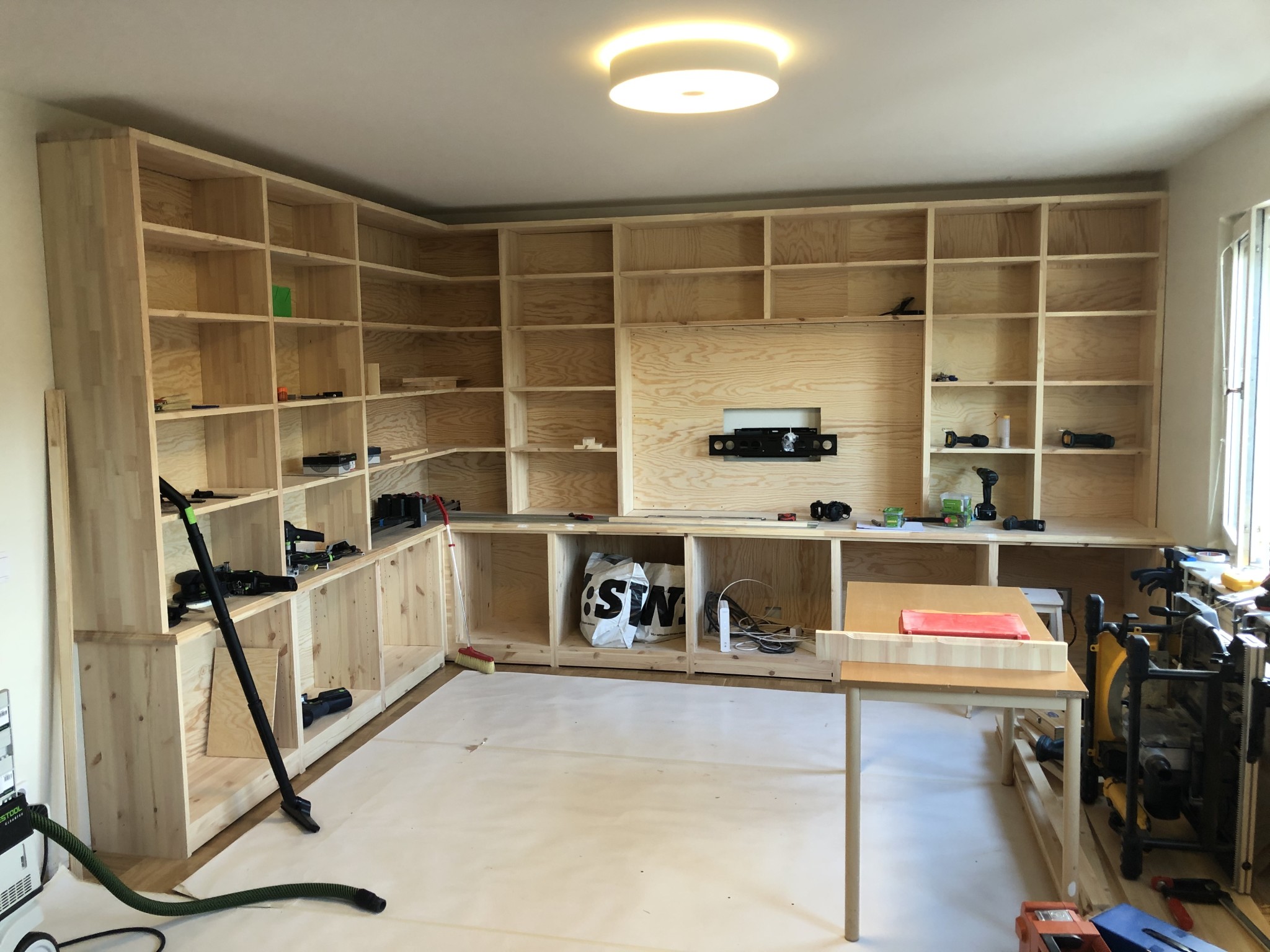 Ser ju riktigt snyggt ut! Jag gör ett liknande projekt med garderober. Har använt tjocka limfogskivor till stommarna och bakstycken i plywood, precis som du som det ser ut. Jag ska ha dörrar som är 185cm höga och har tänkt att använda 18mm limfog till dem. Är dock helt novis på att göra dörrar så vet inte alls ifall det kommer att funka. Har du något annat förslag ifall jag vill ha massivt trä?