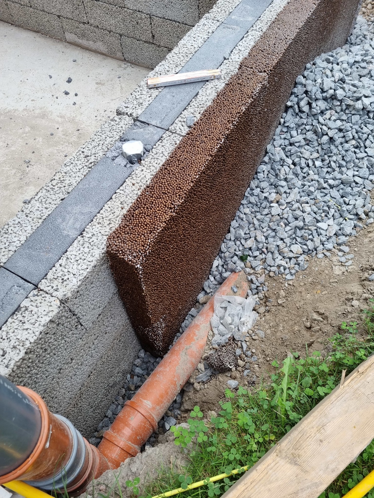 Vidare har han inte lagt någon duk utanför isodränen samt återfyllt 50% typ med grus.
