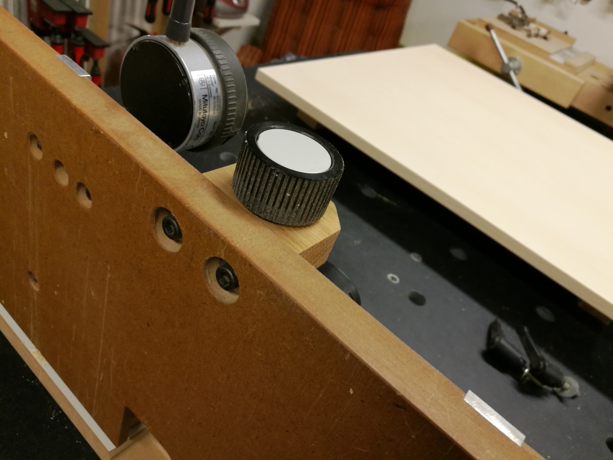 @Pysslarn jag har för mig du är medlem på FWW? Warners anhåll finns beskrivet på http://www.finewoodworking.com/2000/10/01/micro-adjustable-router-fence (man måste vara medlem för att ladda ner). Mitt anhåll är i princip en rip-off på hans fast jag har satt mätklockan så centralt det går för att minimera mätfel.