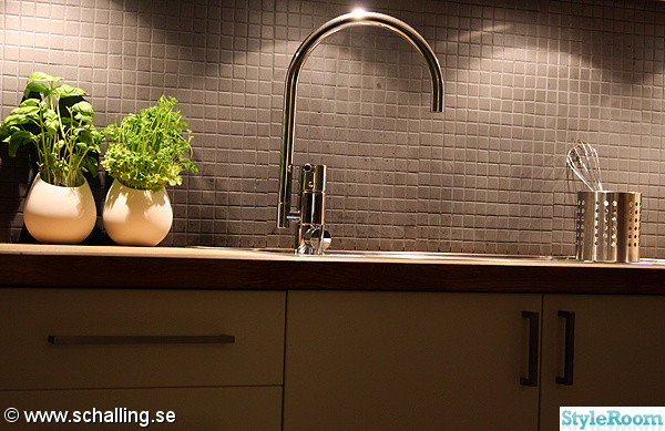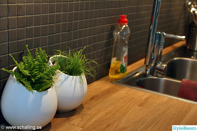 Tror inte det är ett visningskök. Men jag har också tänkt på att det inte är fogat i nederkanten. Om det ens är fogat alls nånstans. Men hur som helst så gillade jag djupet i kaklet, det ger en rustik känsla som jag gillar. Det blir så jäkla platt och tråkigt när fogen går hela vägen upp. Jag har gjort flera tester med olika nyanser av fog (baserat på kolgrå och svart fog). Men det är svårt hur man än gör att få den där känslan av djupet och att inte fogen tar över väldigt mycket av utseendet när det går hela vägen upp. Det är ju nästan som att det blir en ljus vägg med grå fog även fast det är mörkt kakel jag har.