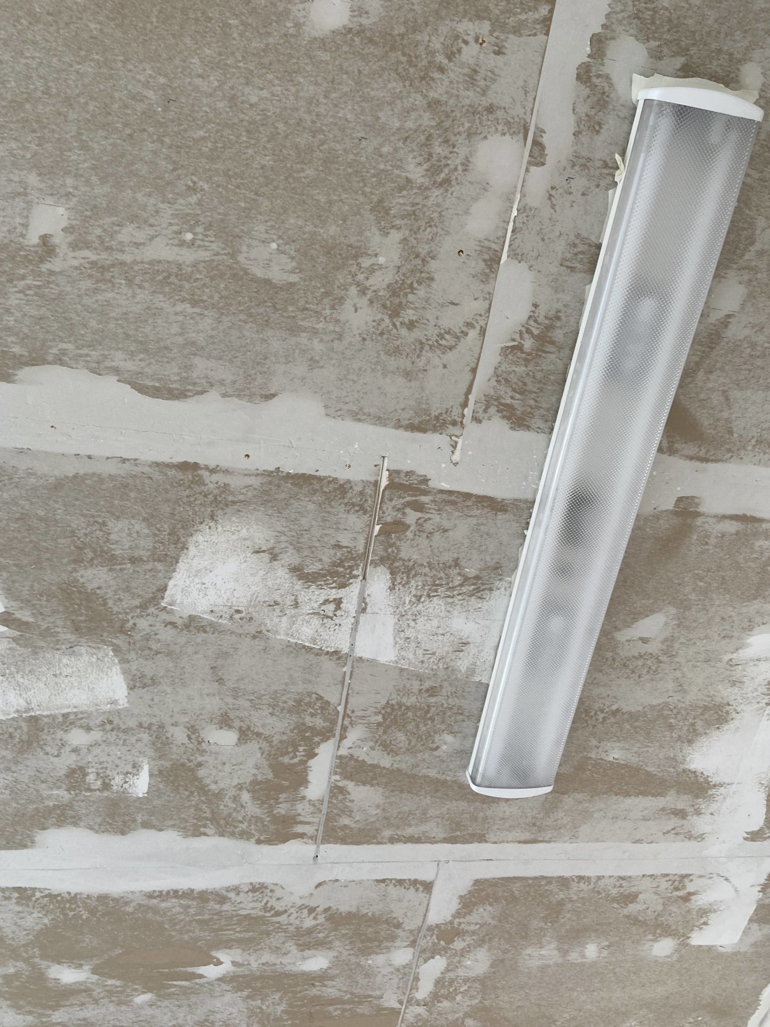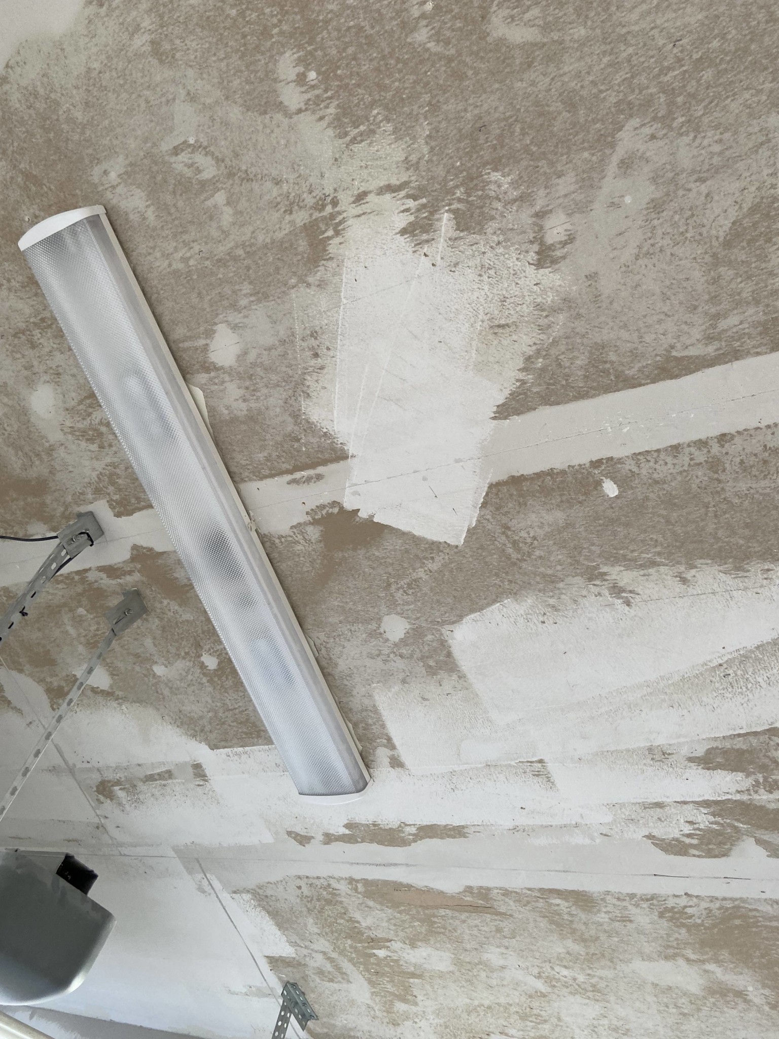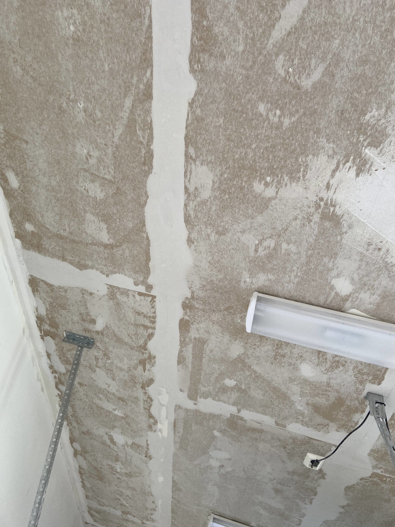 I taket har den bruna pappen på gipset kommit fram. Se bilder.