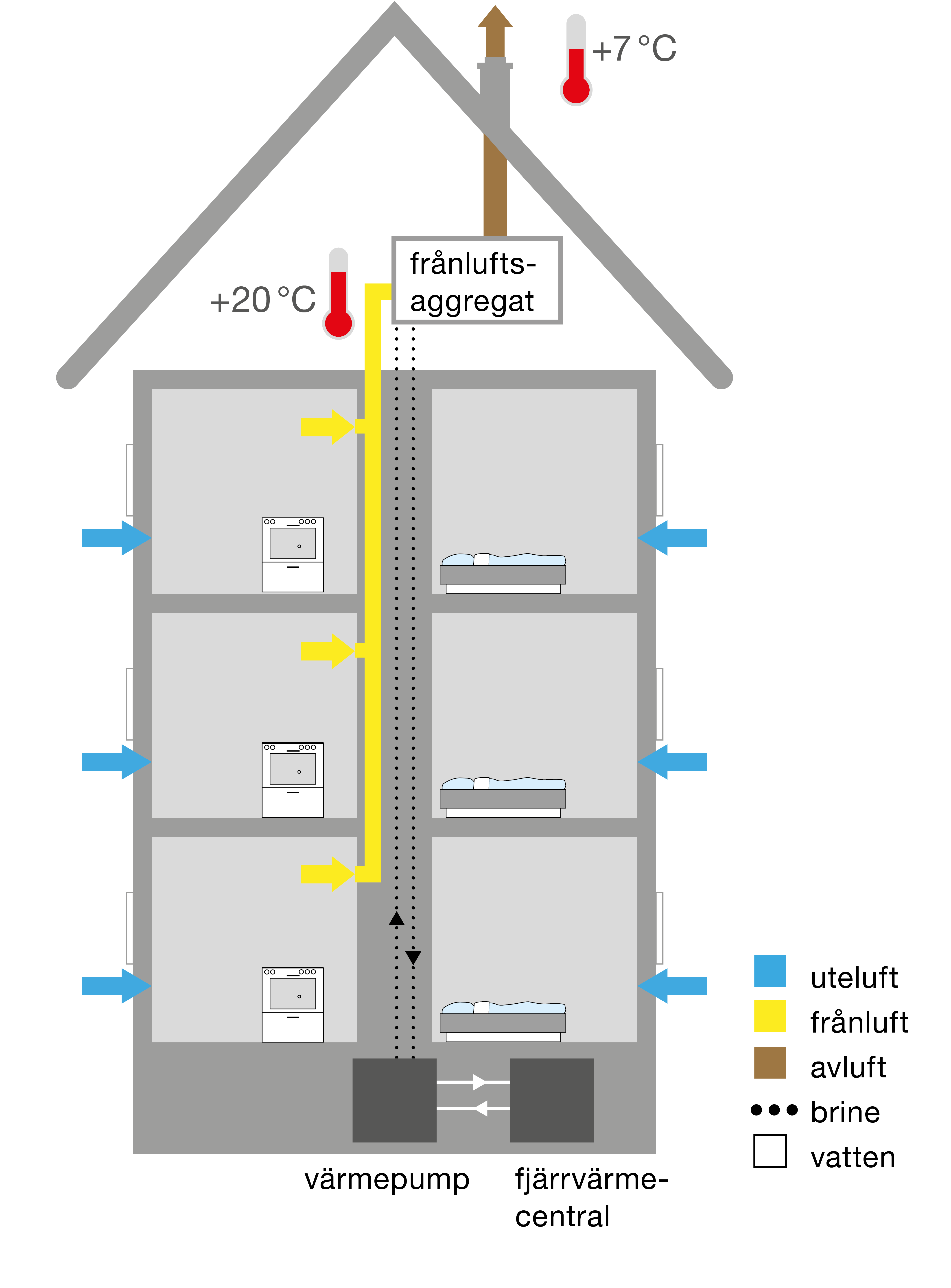 Konvertera mekanisk frånluft med värmeåtervinning till bergvärme