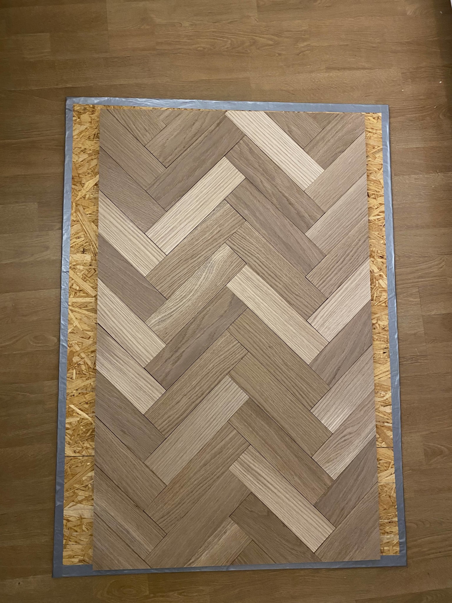 Jag håller på med ett soffbord i fiskbensmönster där jag använder mig av ek och skulle behöva tips på vad jag kan göra för att fixa till springorna mellan plankorna.