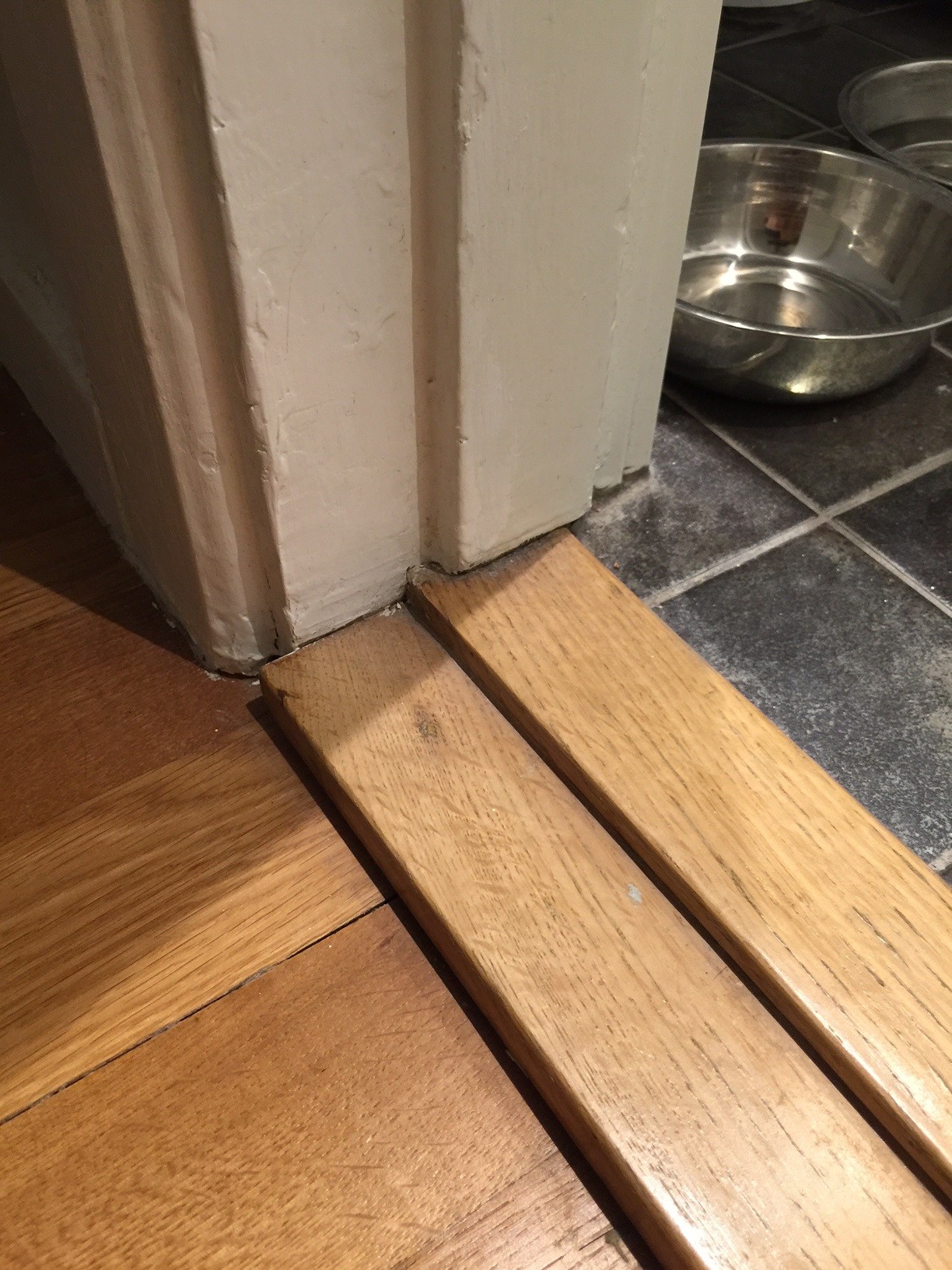 Problemet med det är väl att det inte löser passningen till dörren, samt att jag tror det kan vara klurigt att få loss tröskeln utan att skada den, den sitter ju spikad i golvet. Vill ju inte skada parketten i hallen heller.