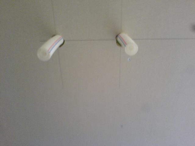 En sak föll mellan stolarna när snickarna och rörmokaren fixade vattenledningarna till duschen: ingen tycks ha fäst vattenledningarna riktigt ordentligt, så de är lite för lösa. Nu är väggen igensatt från båda håll, och golvet spacklat.