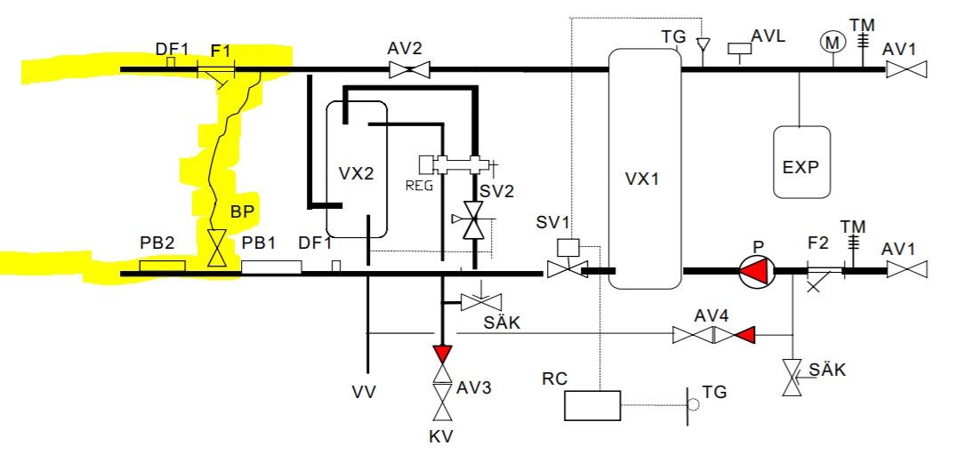 Det kom en trevlig kille från min fjärrvärmeleverantör och kollade och det visade sig att vredet som man kan justera bypassflödet med var paj, så den öppnade aldrig bypassen oavsett hur man vred den. Vi skruvade bort vredet och vips så började det flöda och jag fick varmvatten i kranarna igen