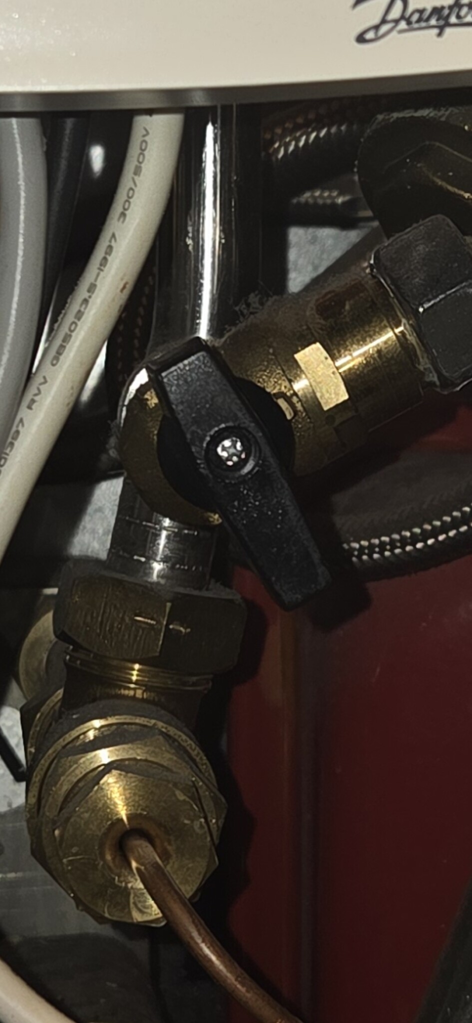 Däremot om trycket stiger till säkerhetsventilens öppningstryck så är det något som läcker (plattvärmeväxlaren eller påfyllningsventilen).