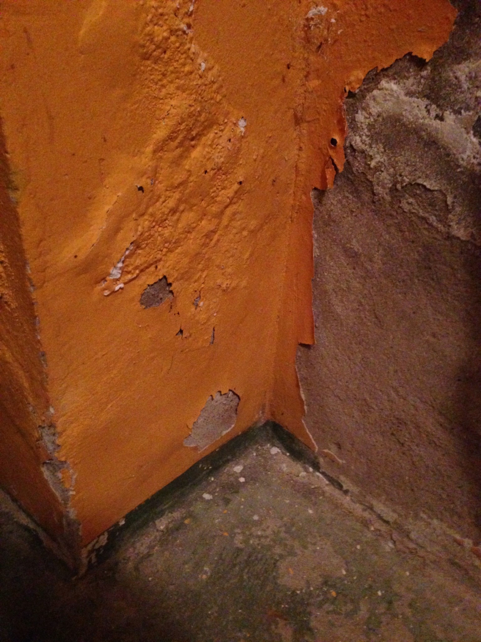 Så här ser det ut på väggarna på en del ställen i garaget. Det mesta ligger ovan jord och torde således inte ha med dränering att göra. Så vad är orsaken och hur gör jag för att måla om på bästa sätt? Behöver jag göra mer än att skrapa och måla?