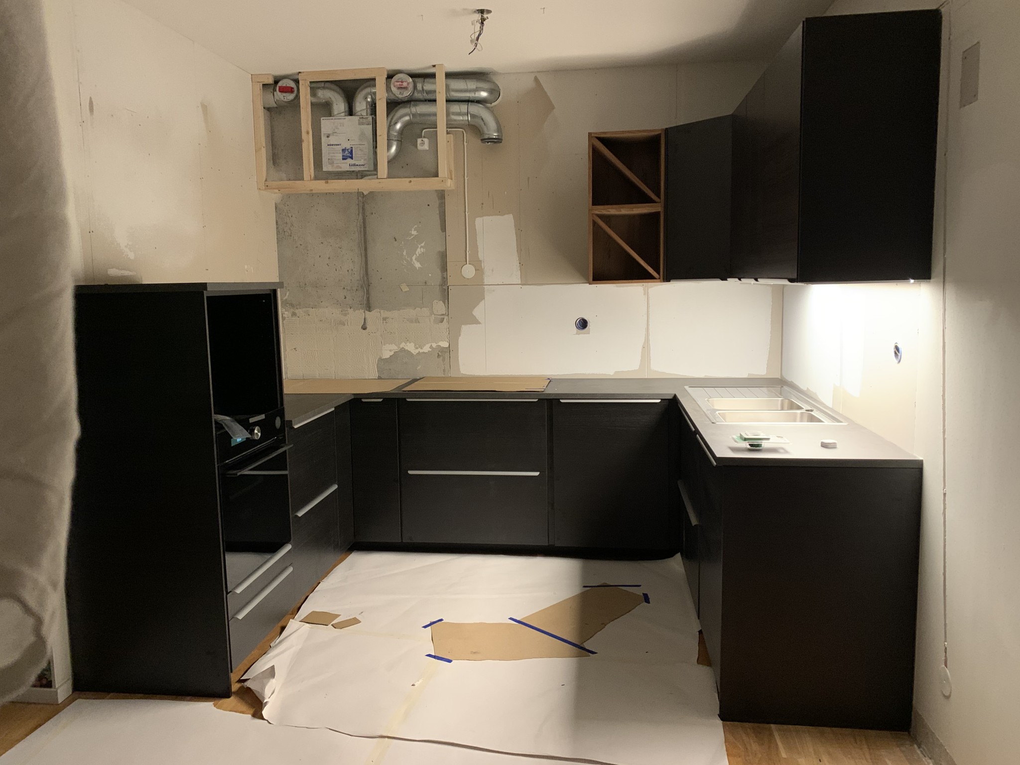 Fram tills allt var klart kändes lådan klumpig men med alla skåp och kakel på plat så känns den OK och de som ser köket för första gången ser den knappt.
