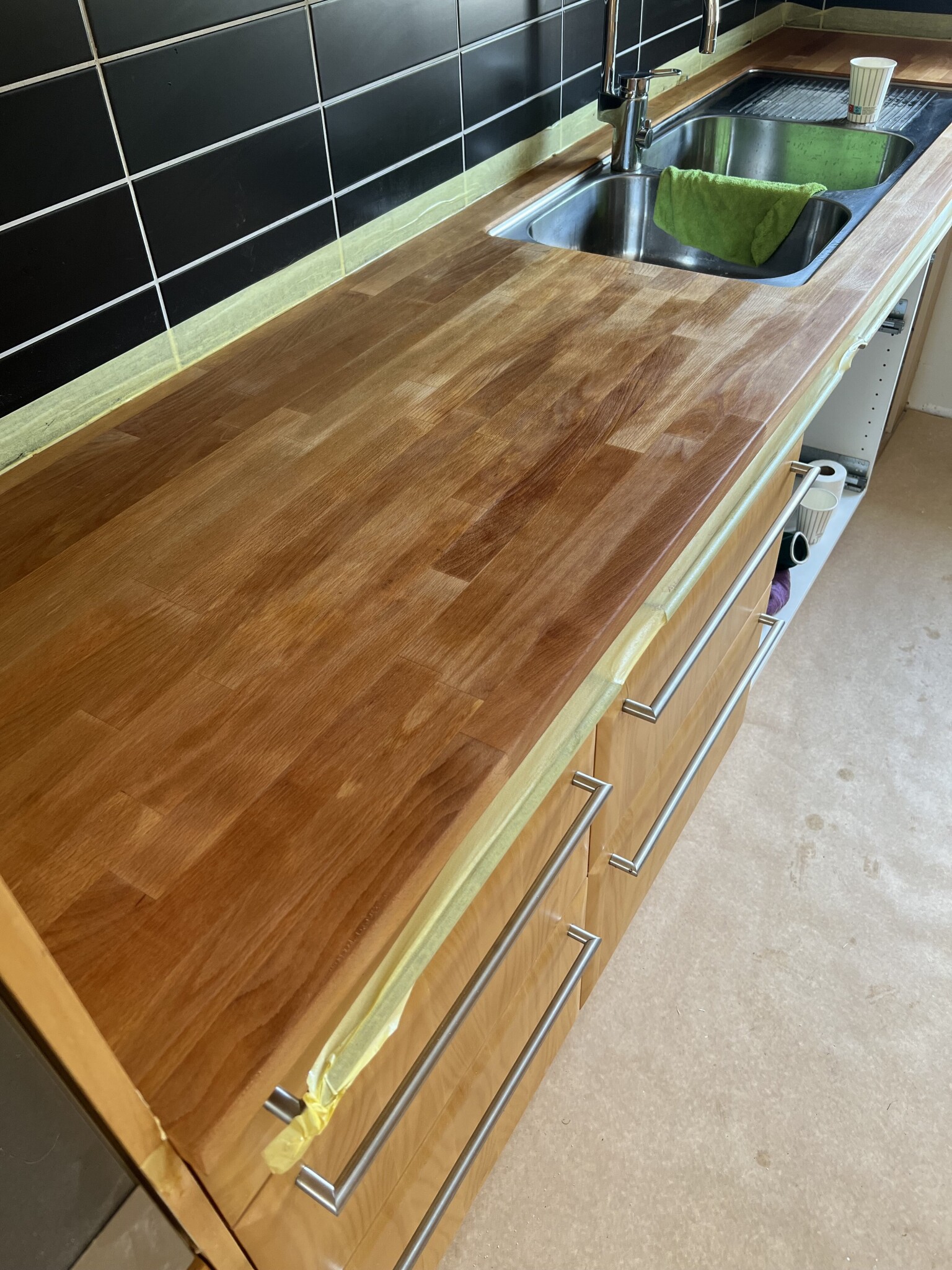 Har köpt hus där jag slipat köksbänken, tycker jag, noggrant o flera gånger. Först med 80, sedan 120 o sist 240. Har efter rekommendation av bekant oljat in skivan 4 omgångar , rikligt med kokt linolja. Ska jag olja in ännu mer..? Ska jag slipa på nytt..?