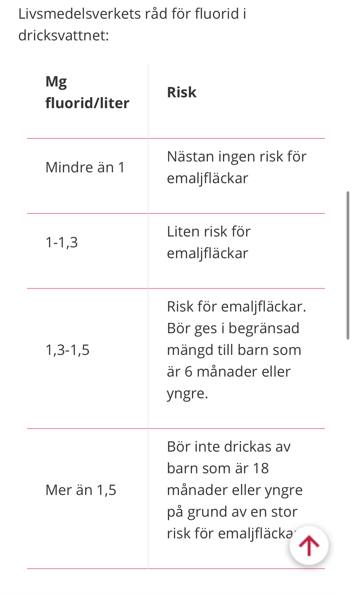 Har gjort två vattenprover och fått resultatet 1,4 mg/l och 1,7 mg/l i fluoridhalt. Känner ingen oro för oss vuxna men hur bör vi tänka för barn? det är ju runt och snäppet över gränsvärdet. Ett filter för dessa värden känns lite onödigt, sen vill man ju inte fixa annat vatten tills barnen fått sina riktiga tänder.