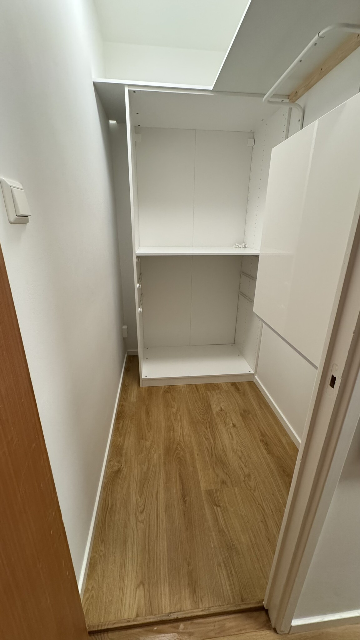 Blev lite stänk på väggarna precis i början av varje hink, men de är bara grundmålade så lätt att torka bort fläckarna med fuktig trasa så fort golvet var gångbart. Visste inte innan hur mycket det skulle stänka så skyddade väggen där det inte blir några garderober med plast för säkerhets skull.