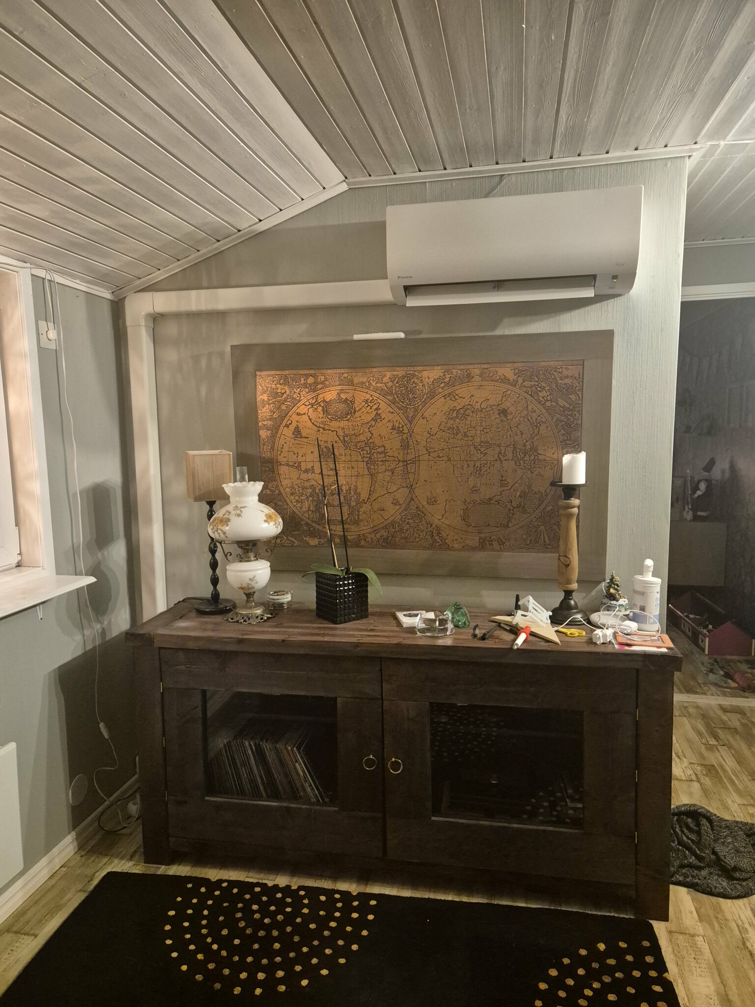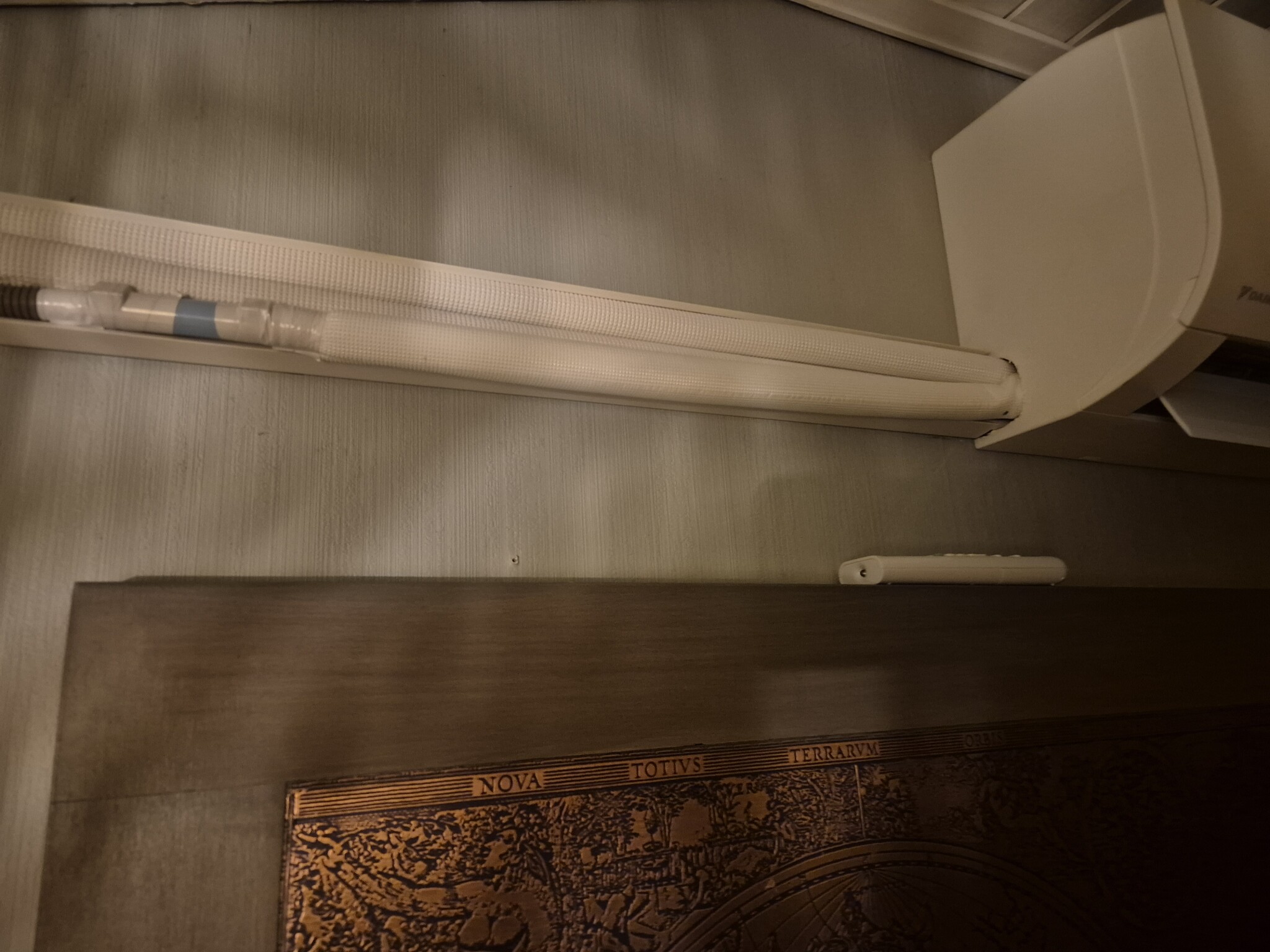 Hej! Jag är sugen på att sätta akustikpanel på den här väggen där luftvärmepumpen sitter med en utanpåliggande rördragning. Har funderat på hur man ska gå tillväga för att göra detta snyggt och undrar om det skulle gå att lossa värmepumpen från väggen sätta några distanser mellan den och vägg så den kommer ut en bit så man kan bygga en vägg för att täcka rören. Men då krävs det att rören ska böjas något. Är det någon som har erfarenhet av detta om det är en bra eller dålig idé eller hur man ska gå tillväga?