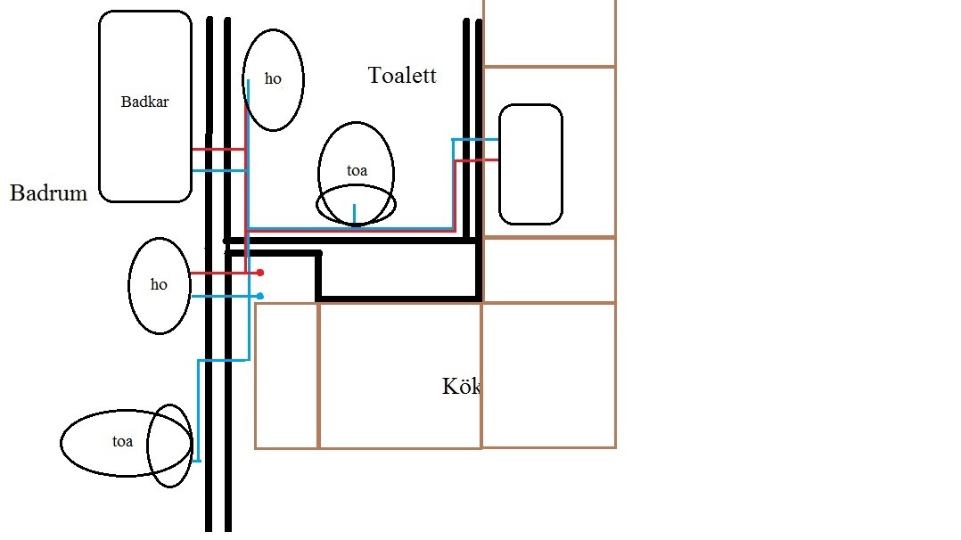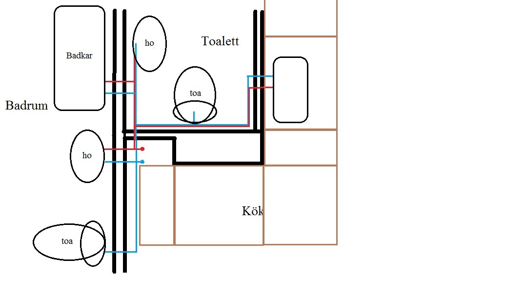 Var vill ni ha en eventuell fördelningslåda, om det ska bli dold förläggning av rören, var vill ni att KV & VV komma in i badrummet om det ska vara utanpåliggande rör.