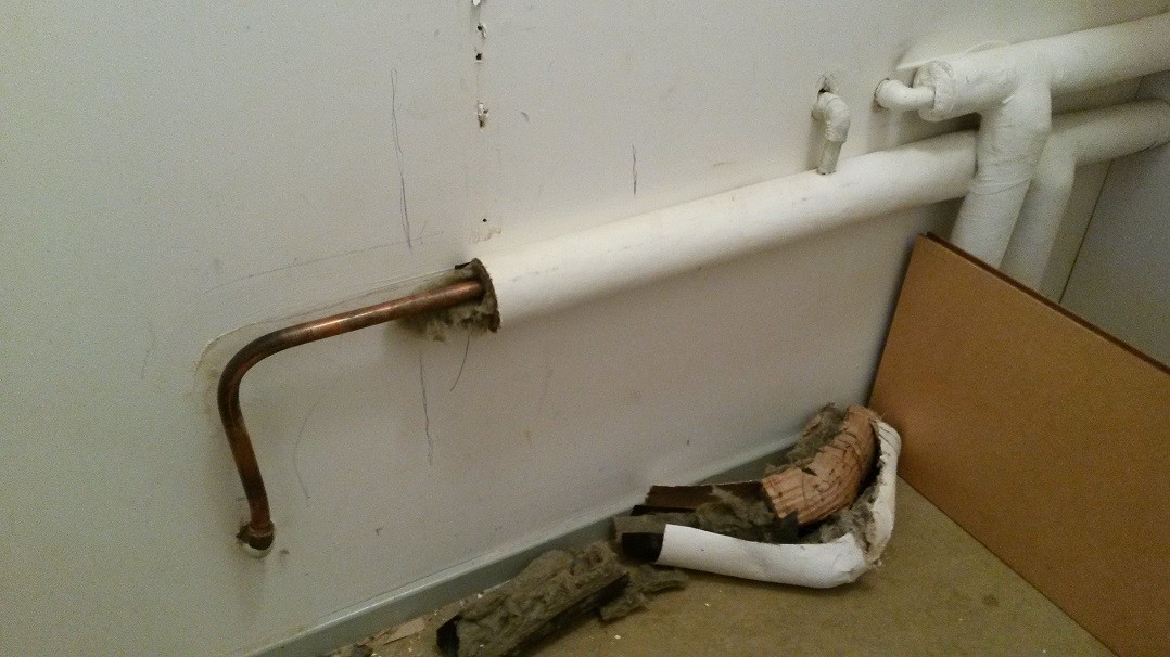 Röret går igenom gipsvägg ut till toaletten, vad behöver jag för att fixa detta?