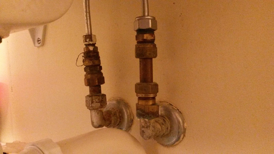Långa sträcket är där nya bänken kommer sluta, korta är ca 20cm från KV röret som går till handfatet i badrummet. Röret är 16mm