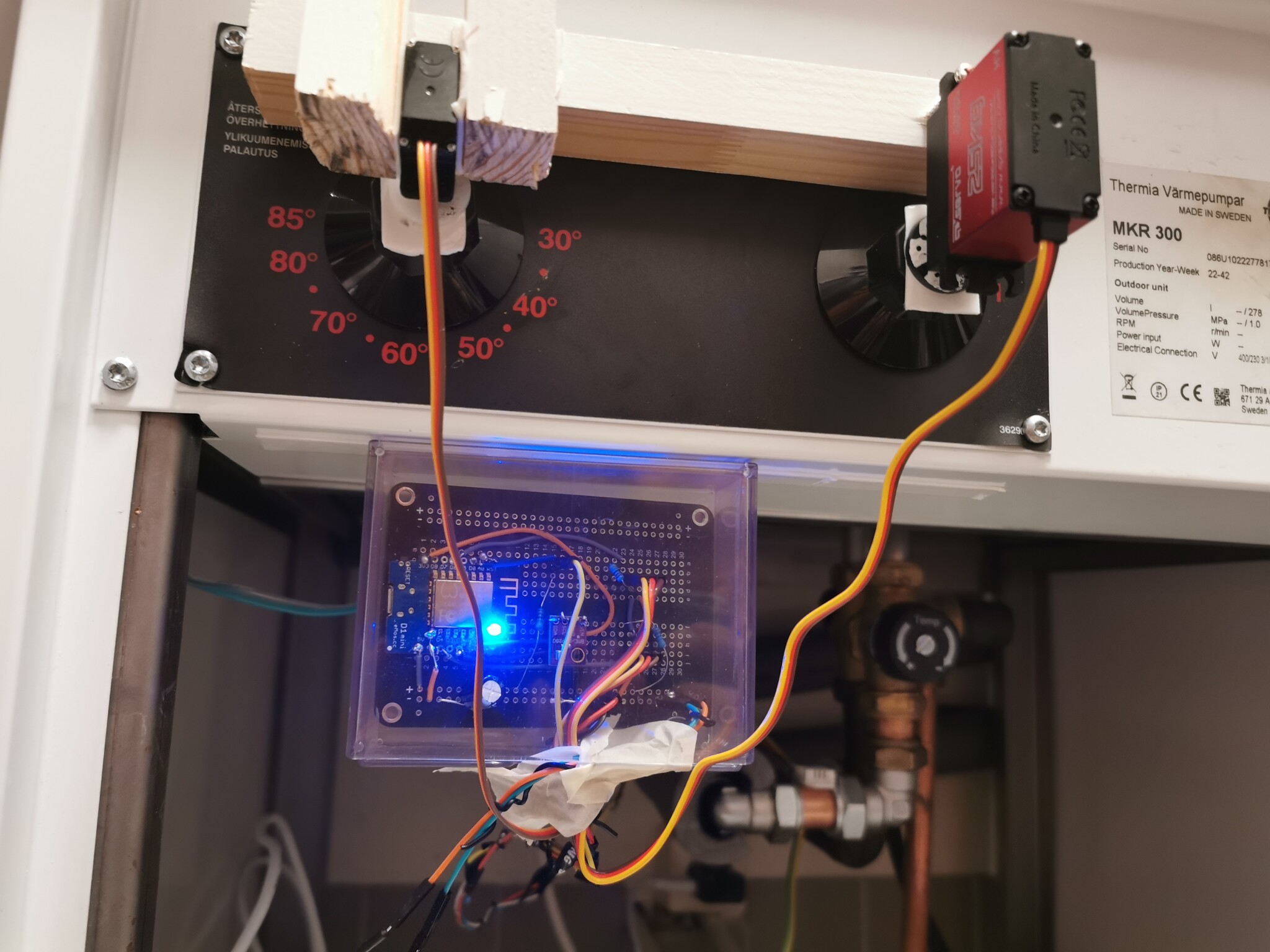 Jag börjar dock inse att den största utmaningen är att montera servon på vredet i min Nibe compact VVB, har sett att några har limmat fast servon men skulle vilja ha en lösning som går enkelt att demontera om servon går sönder (Kjell hade bara 4-pack så har några i reserv).