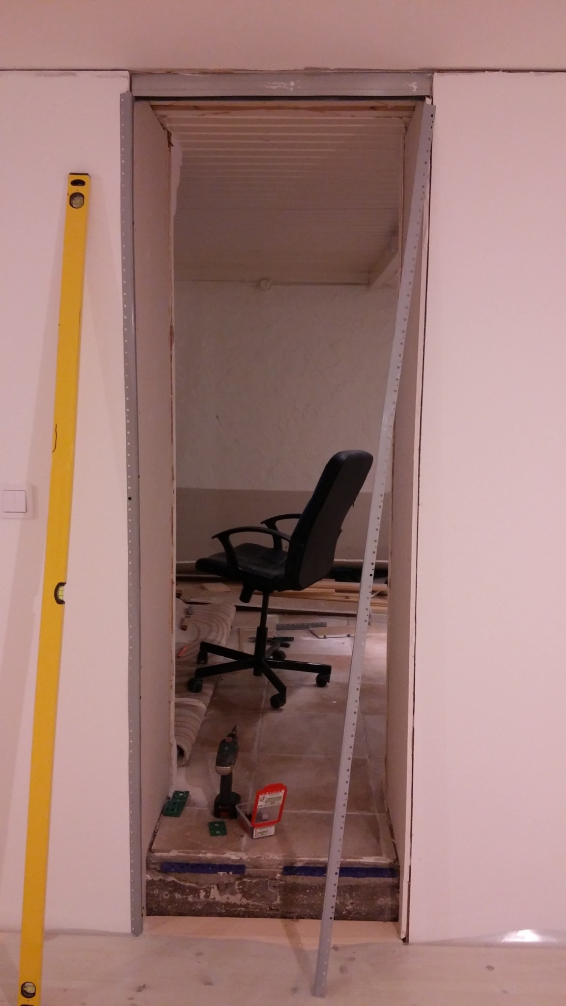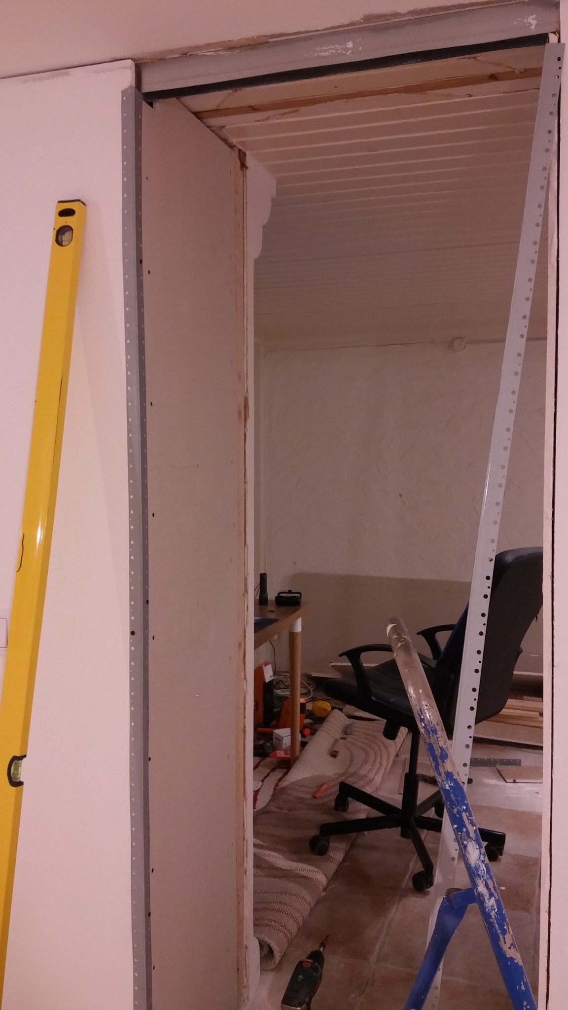 Foder runt dörröppning med gipsytterhörn förstärkta med metallist