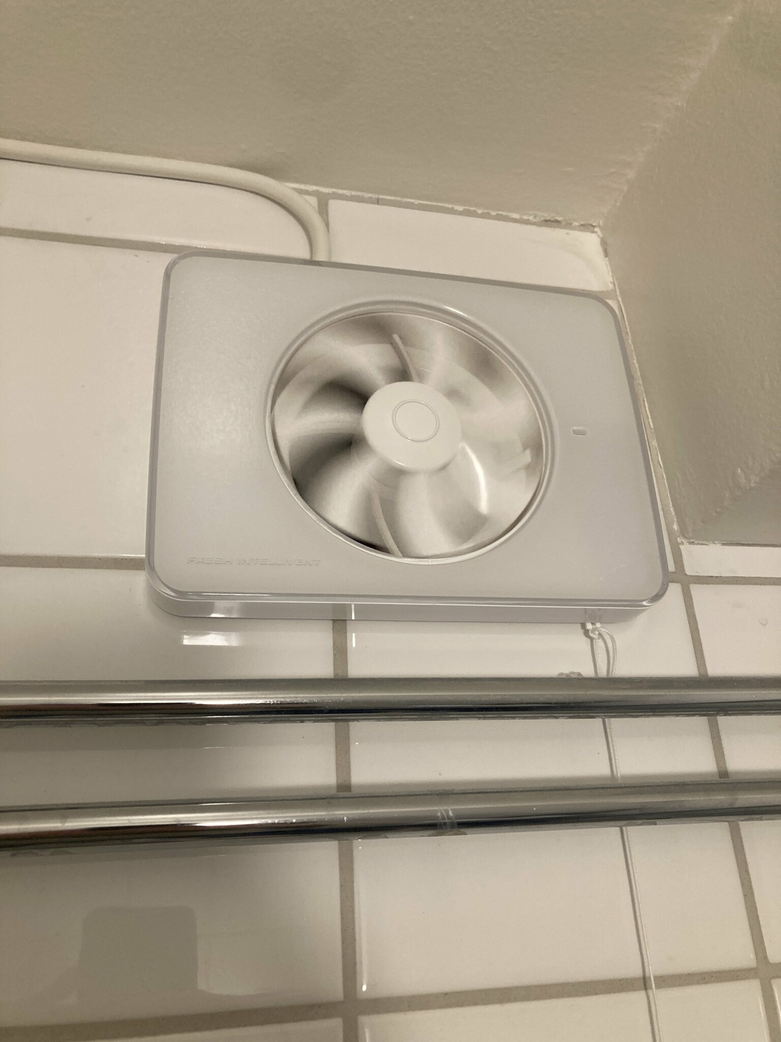 Utloppet är i väggen högt upp. Är ett fyrkantigt ”hål” som går uppåt i huset. Tegelsten där inne. Jag har försökt förstå om sovrummets ventilation på nått sätt kommer in i samma ventilationsutrymme som badrummets längre upp men kan inte se det i hålet för ögat. Men det ser ut så här bild 3 så möjligt att de möts länge upp på insidan av väggen.K Kirre2021 skrev:
