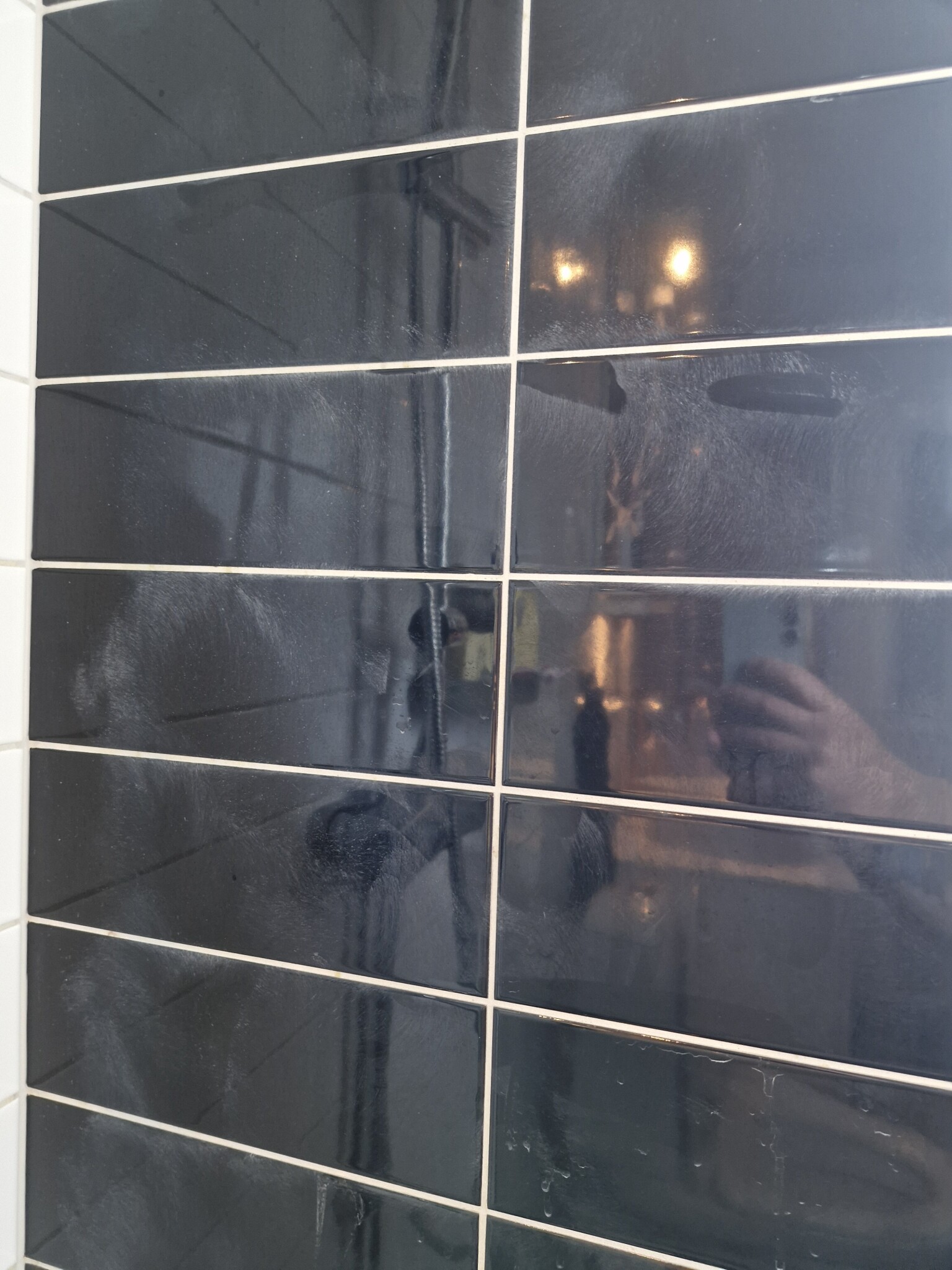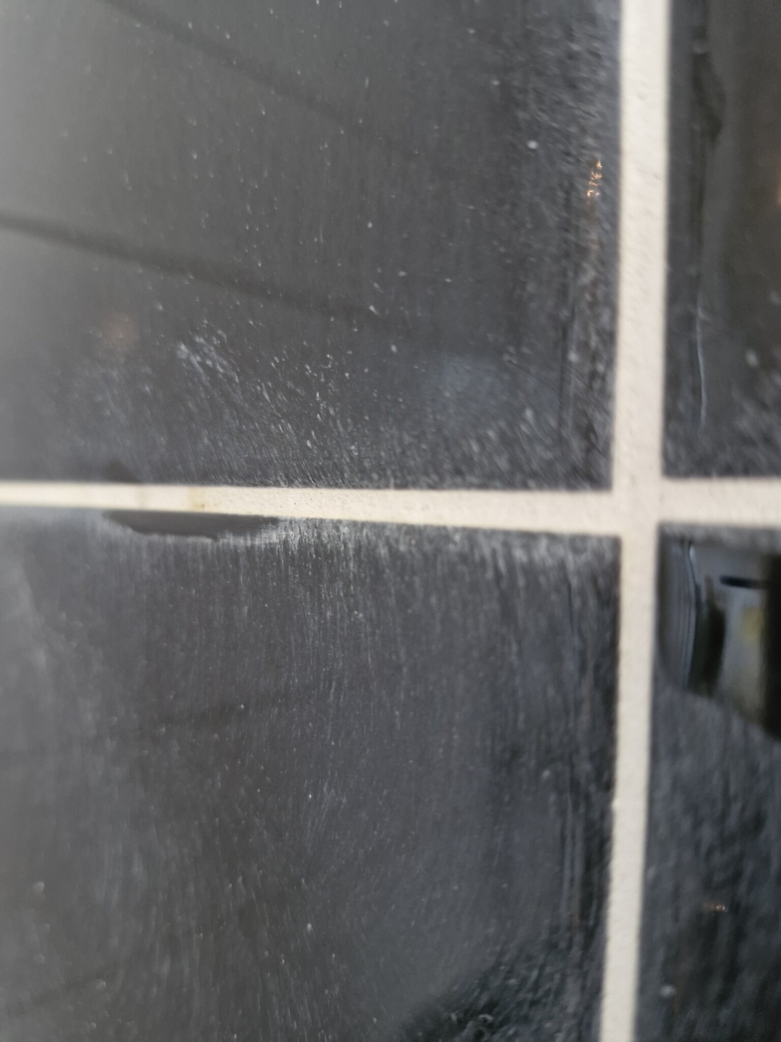 Nu, efter varje dusch så ser det ut som att fogarna (på vissa ställen där jag gjorde rent) lossnar och lämnar därmed "damm-fläckar" på kaklet, se bilder.