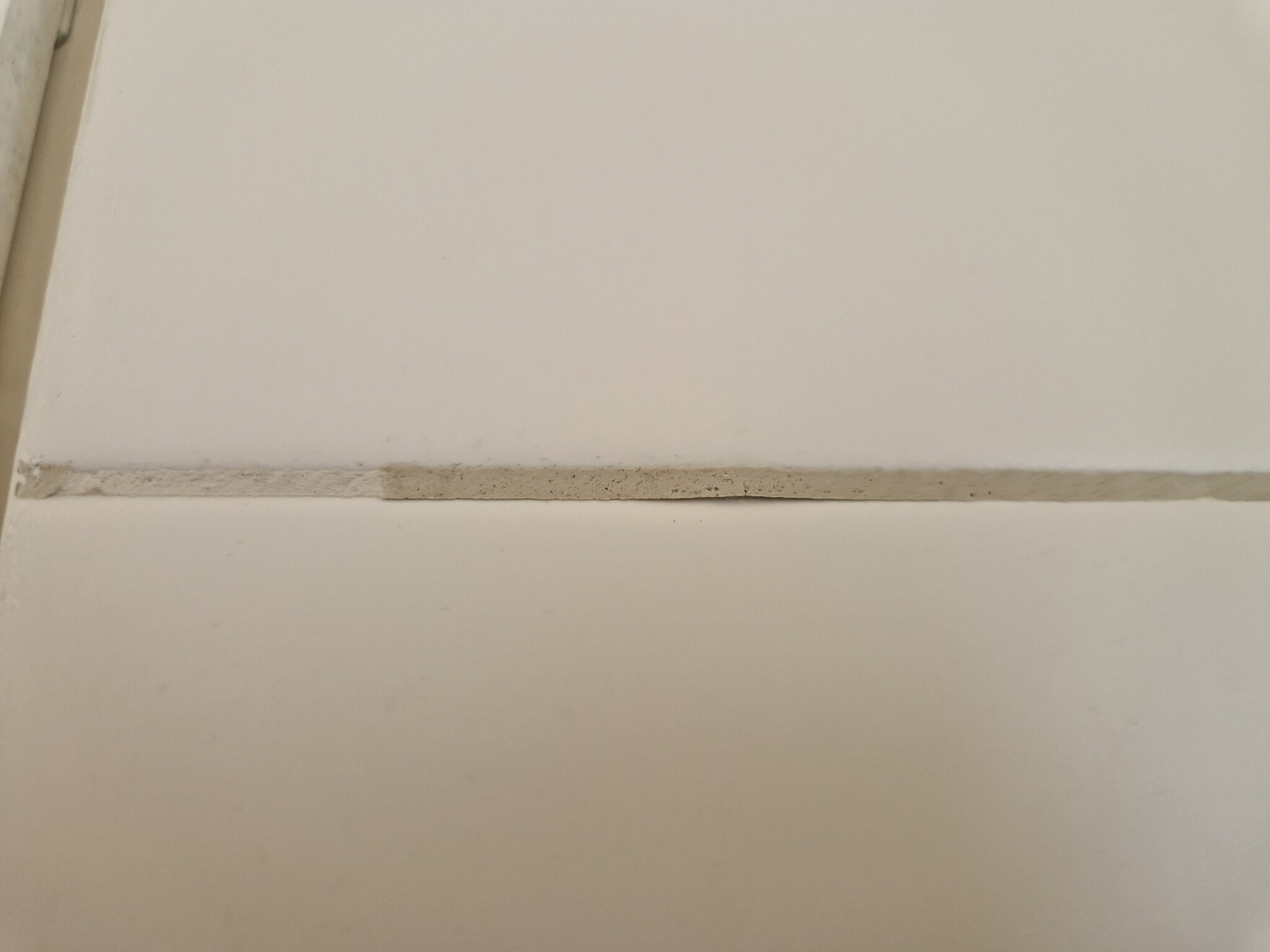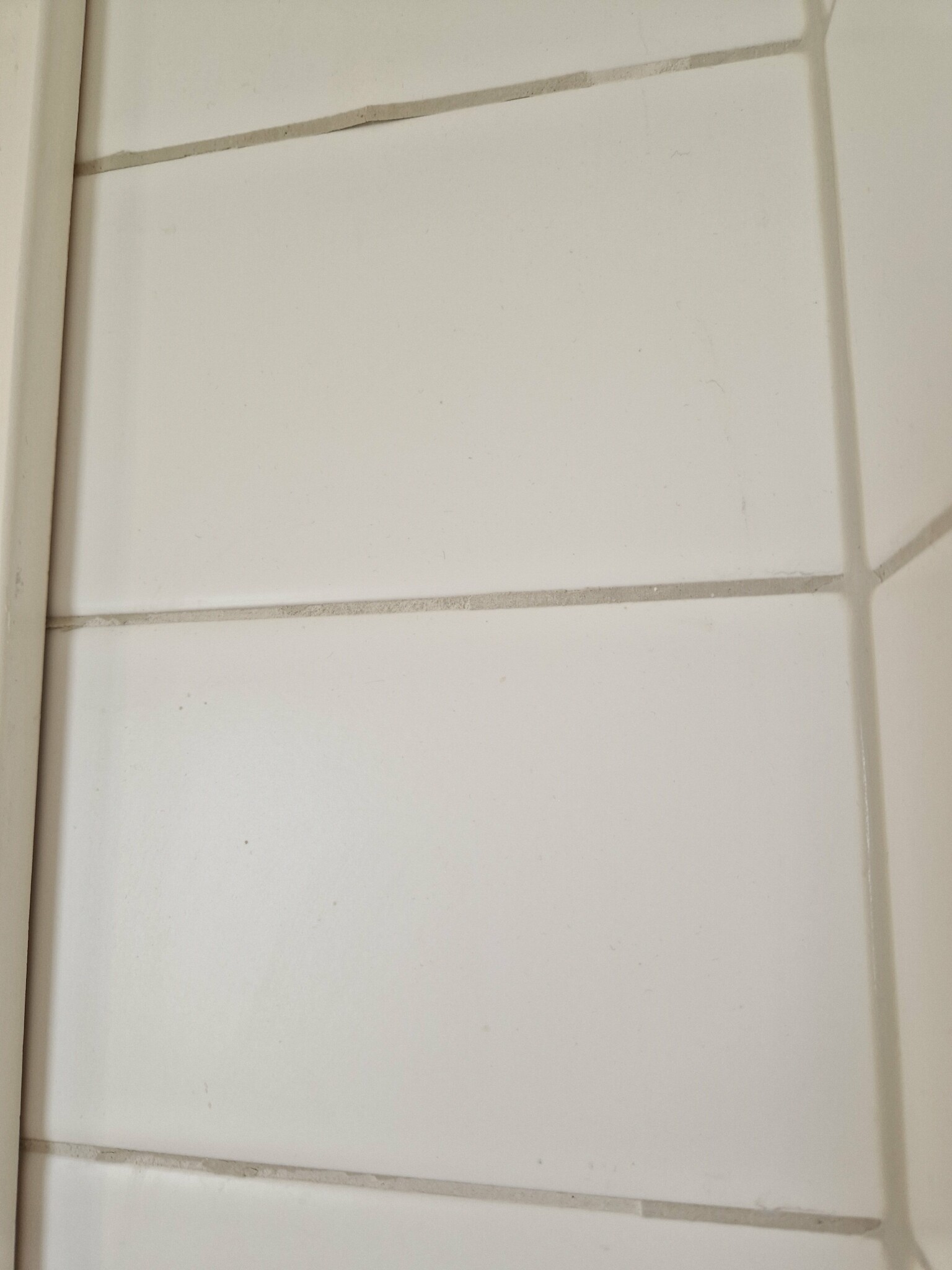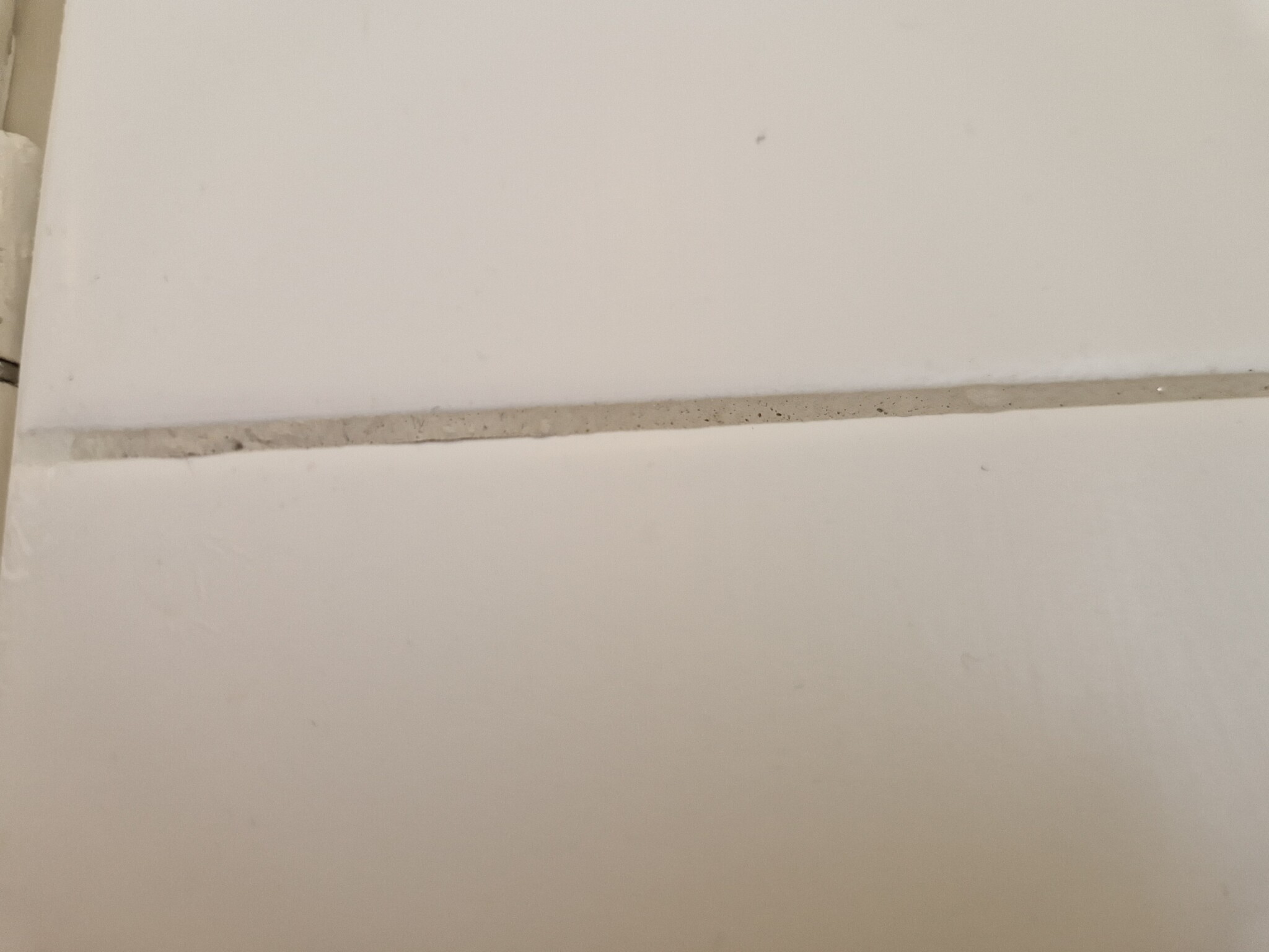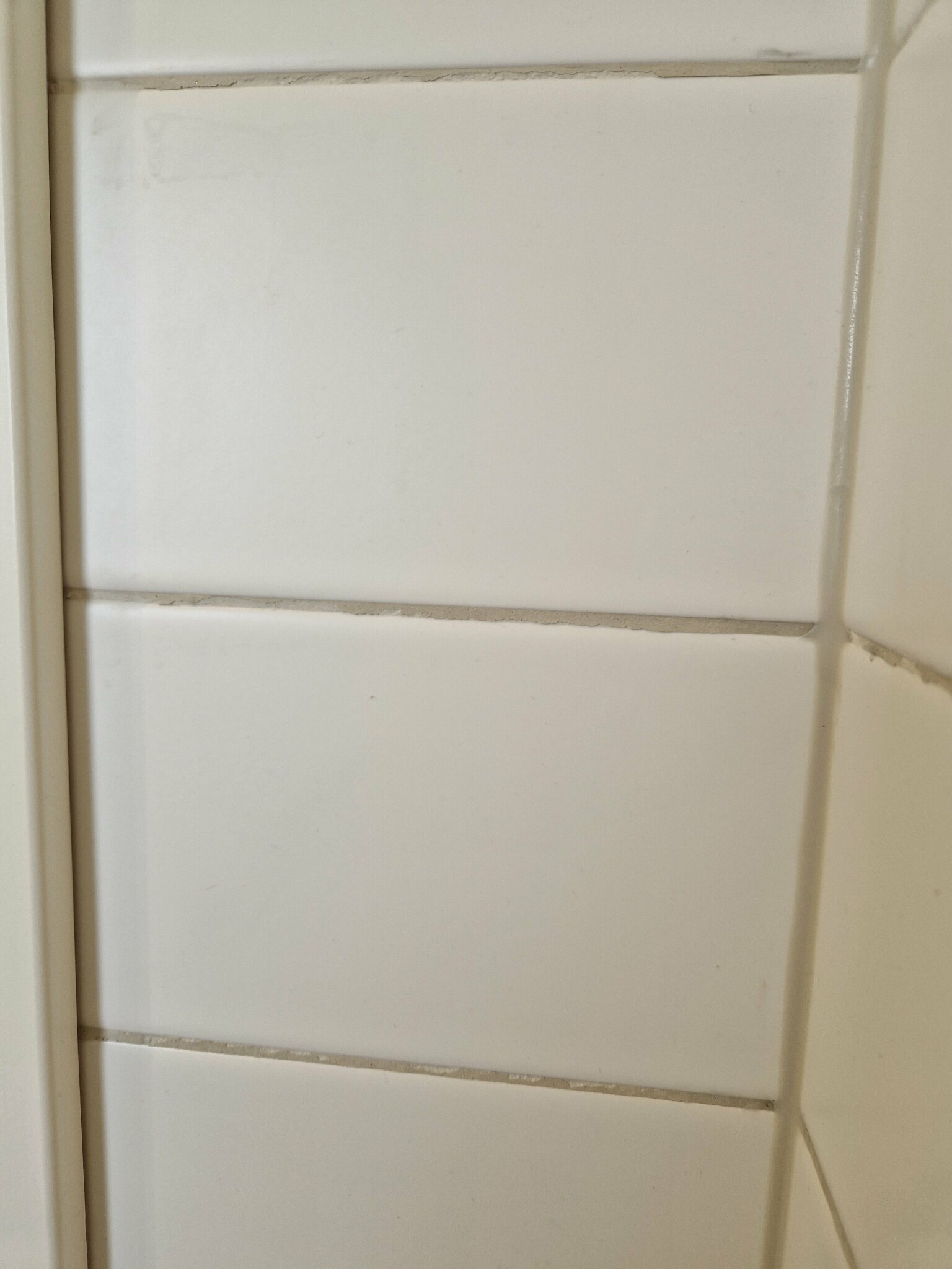 Vi har märkt att det översta lagret av fogen i vårt badrum, som byggdes runt 2015, har börjat lossna. Så här ser det ut: