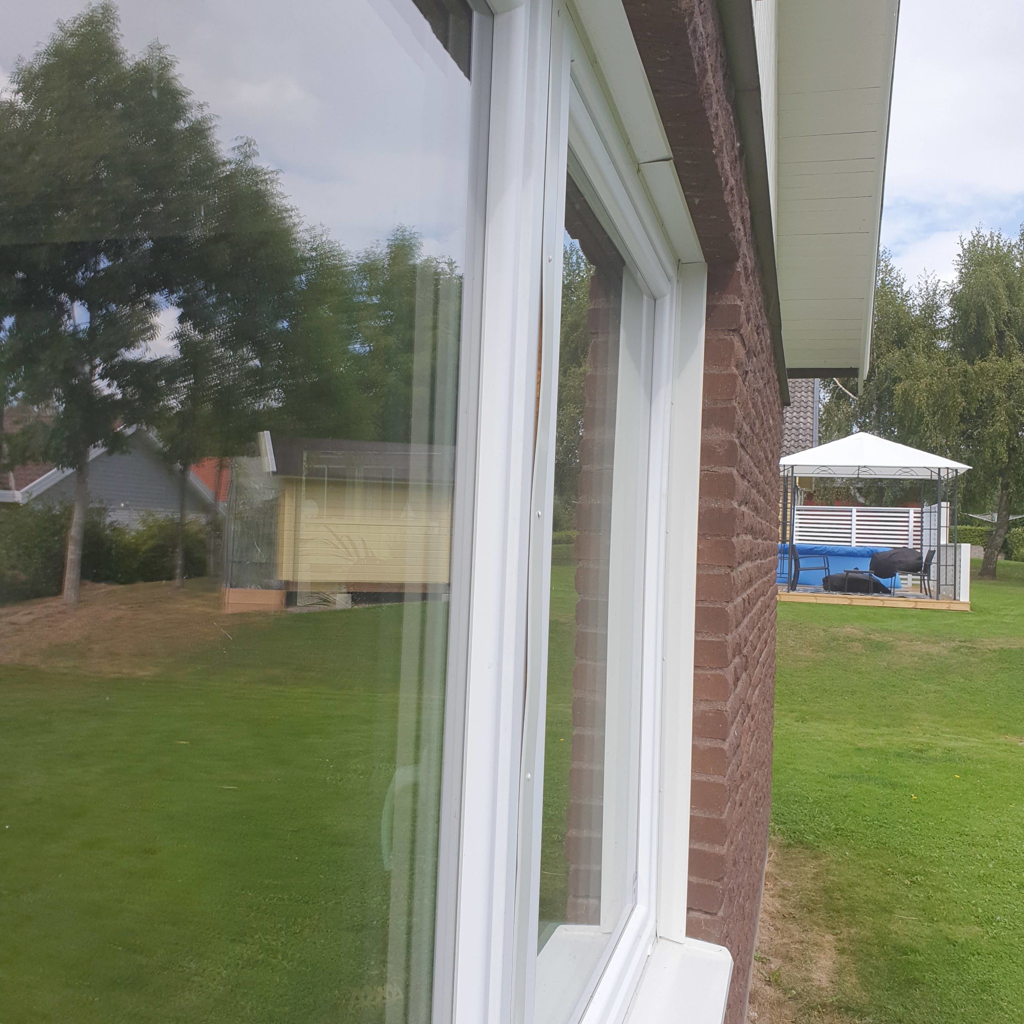PVC-fönster är ju vad det är. Tyvärr blir det aldrig snyggt med det och en massa plåtar. Särskilt svårt när det är vitt också. Kulörerna matchar inte heller.
