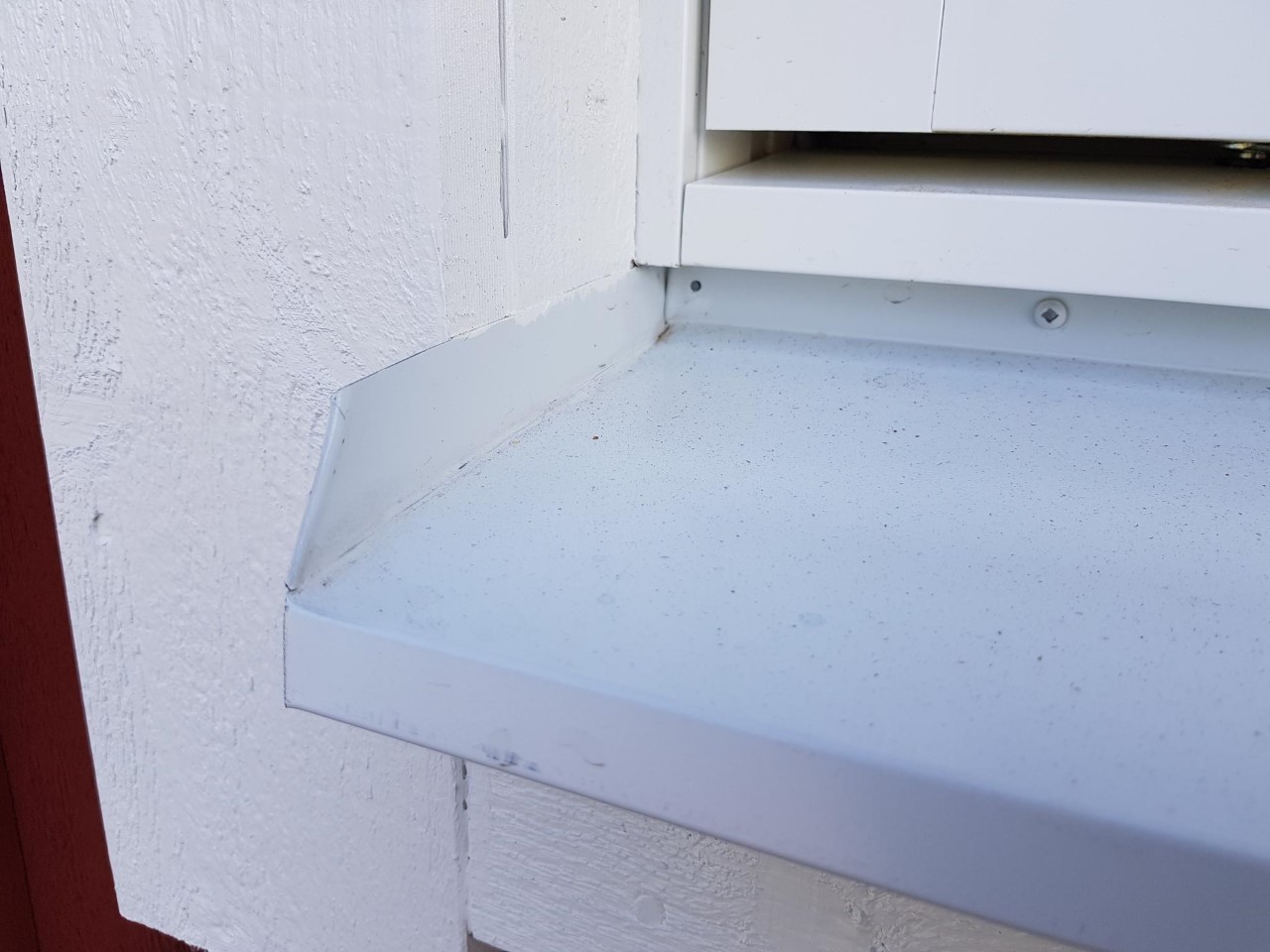Precis fått fritidshuset färdigbyggt, undrar om det är god branschstandard att fästa fönsterbleck på detta sätt. Har sett på andra hus att salningen är kapad nedtill så att fönsterblecket går in under salningen. På mitt hus är det uppvikt utanpå salningen.