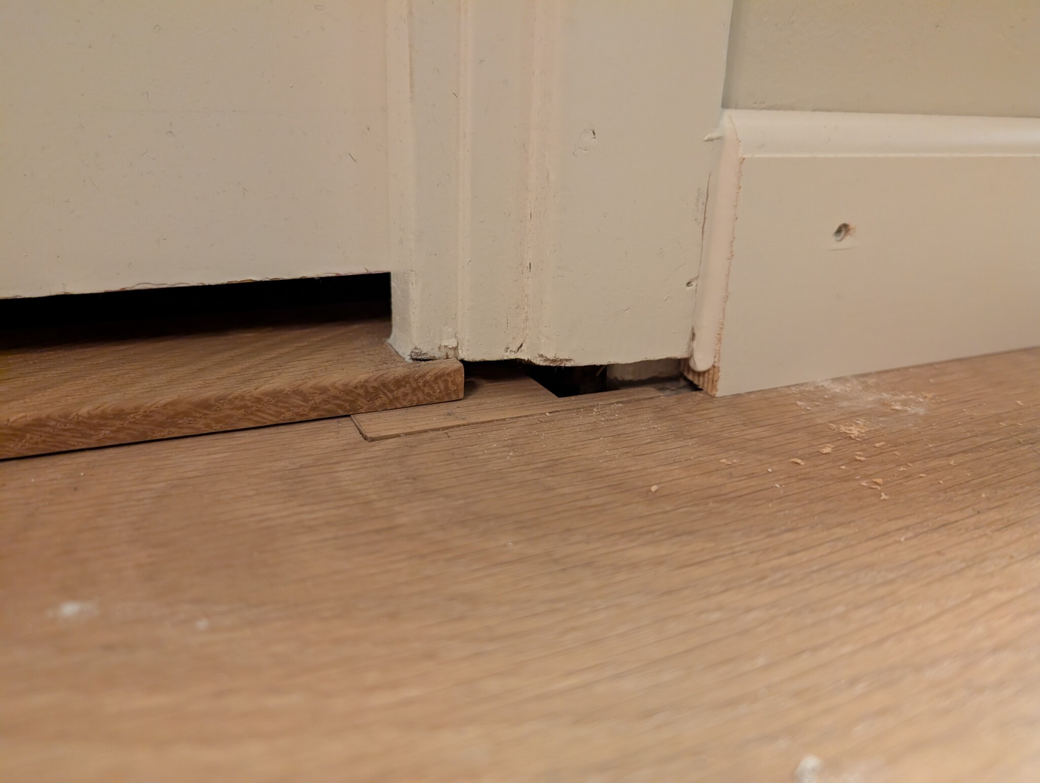 Hej, Har ett par dörrfoder som är för "korta" efter att vi lagt ett nytt, tunnare golv. Hur gör man för att snygga till det på bästa sätt så det går hela vägen ned till golvet? Tack på förhand