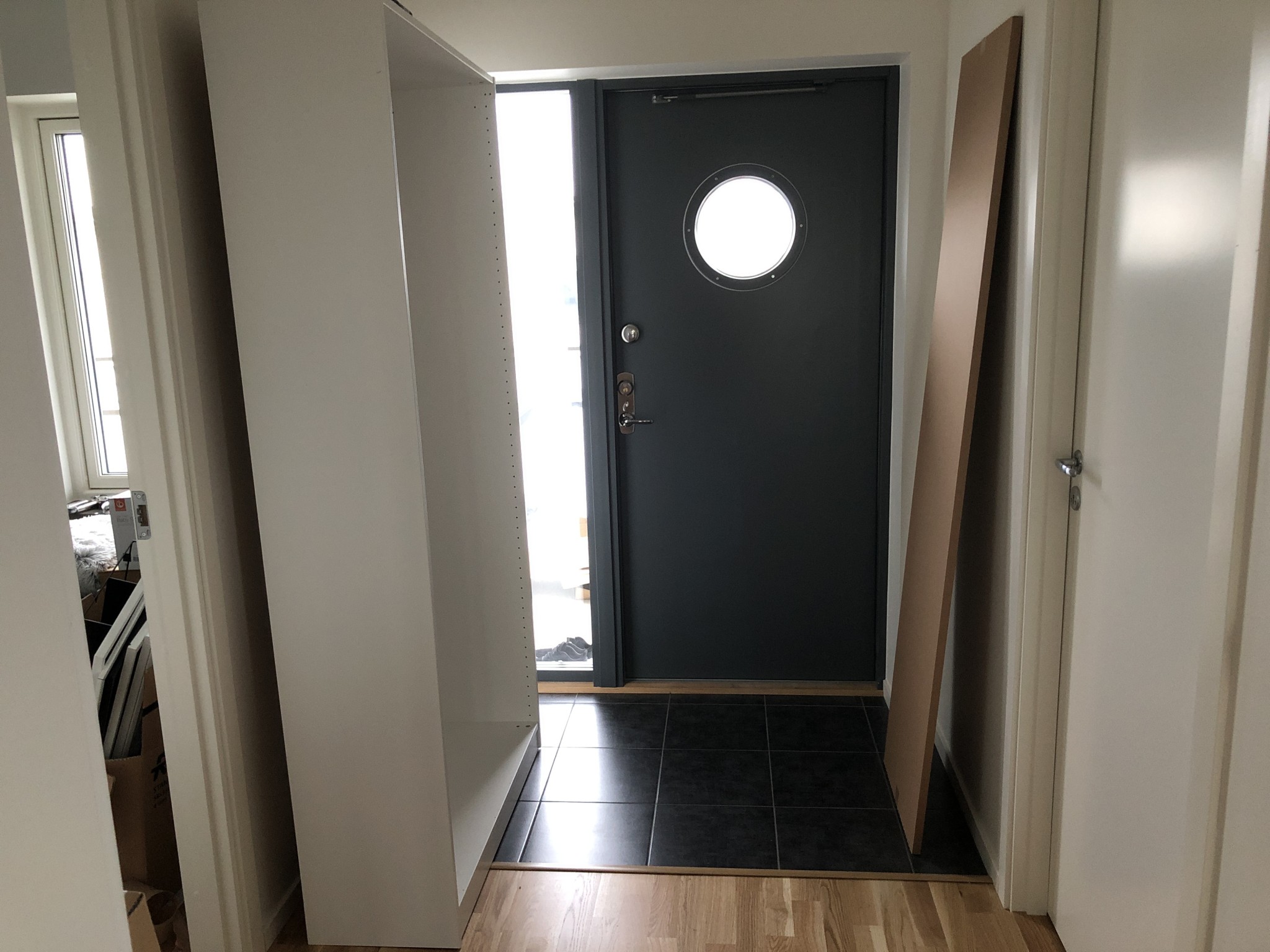 Vi gav upp detta och placerade garderoben i rummet bredvid