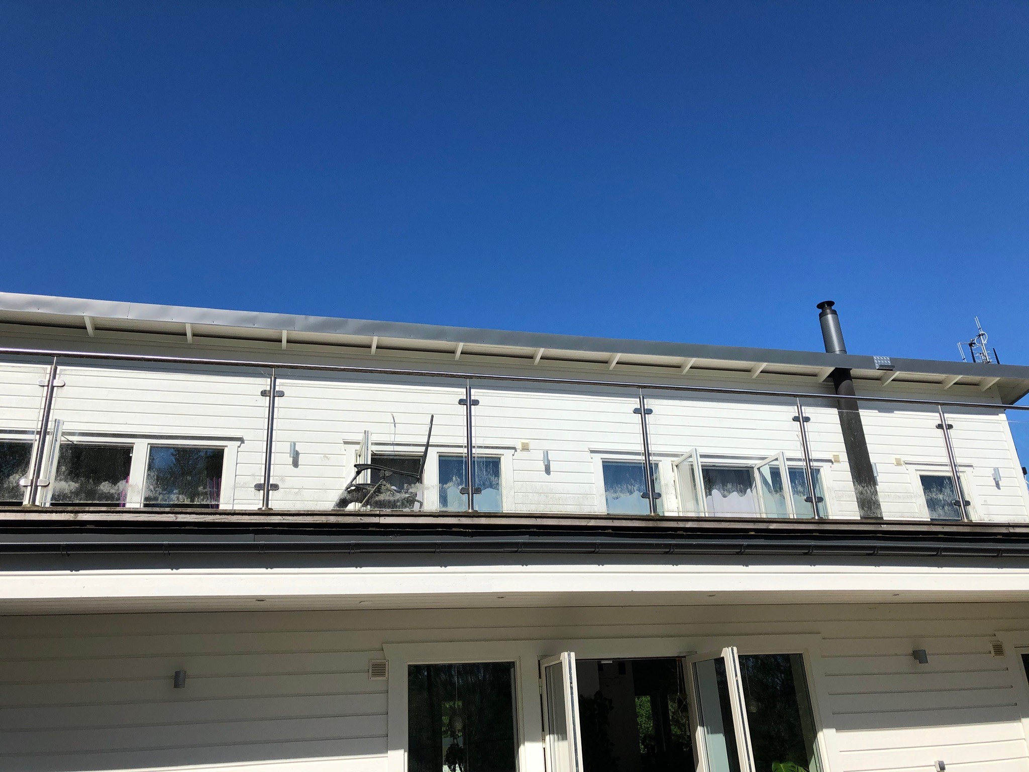 Huset saken gäller har en stor terass som vilar på träreglar. Dessa ligger i sin tur på ett plåttak. Ett 20 meter långt räcke med glaspartier är monterat på stolpar som skruvats i trallen ovanifrån. Konstruktionen är instabil och behöver göras om. Nya galvade stolpar av industrityp kommer köpas in. Dessa har tvåpunkts bult-fäste (balksko-typ)