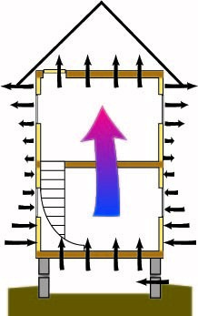 Kommer den varma luften inte lägga sig som ett lock på ovanvåningen så att det inte blir drag? Eller tänker jag fel?