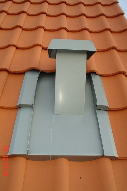 För avloppsluftningen finns ju hole-in-one-pannorna numera som är ett helt system med tätningar osv. Till imkanal och skorsten gör man oftast en underkrage av en bitumenprodukt och sen har du en plåtkrage över som plåtslagaren får ordna till.