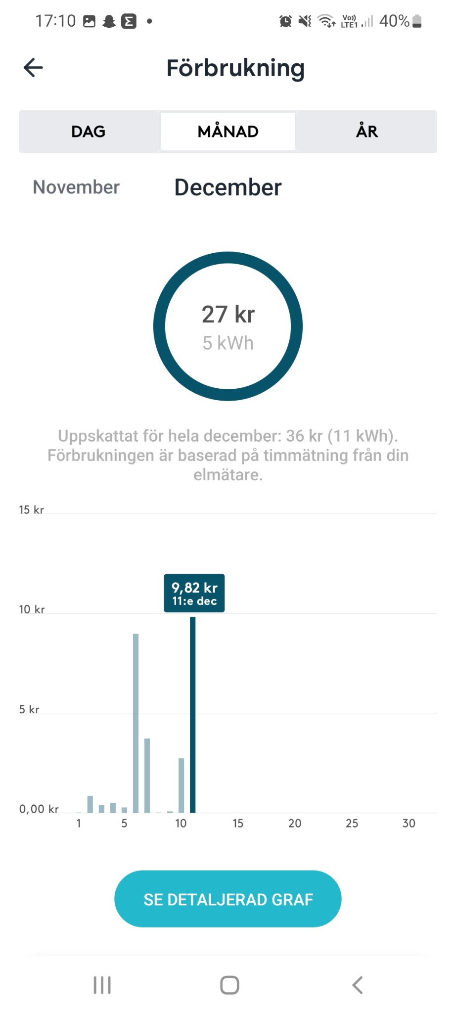 En diskussion med en vän i helgen fick mig att gå in och kika på vår elförbrukning.
